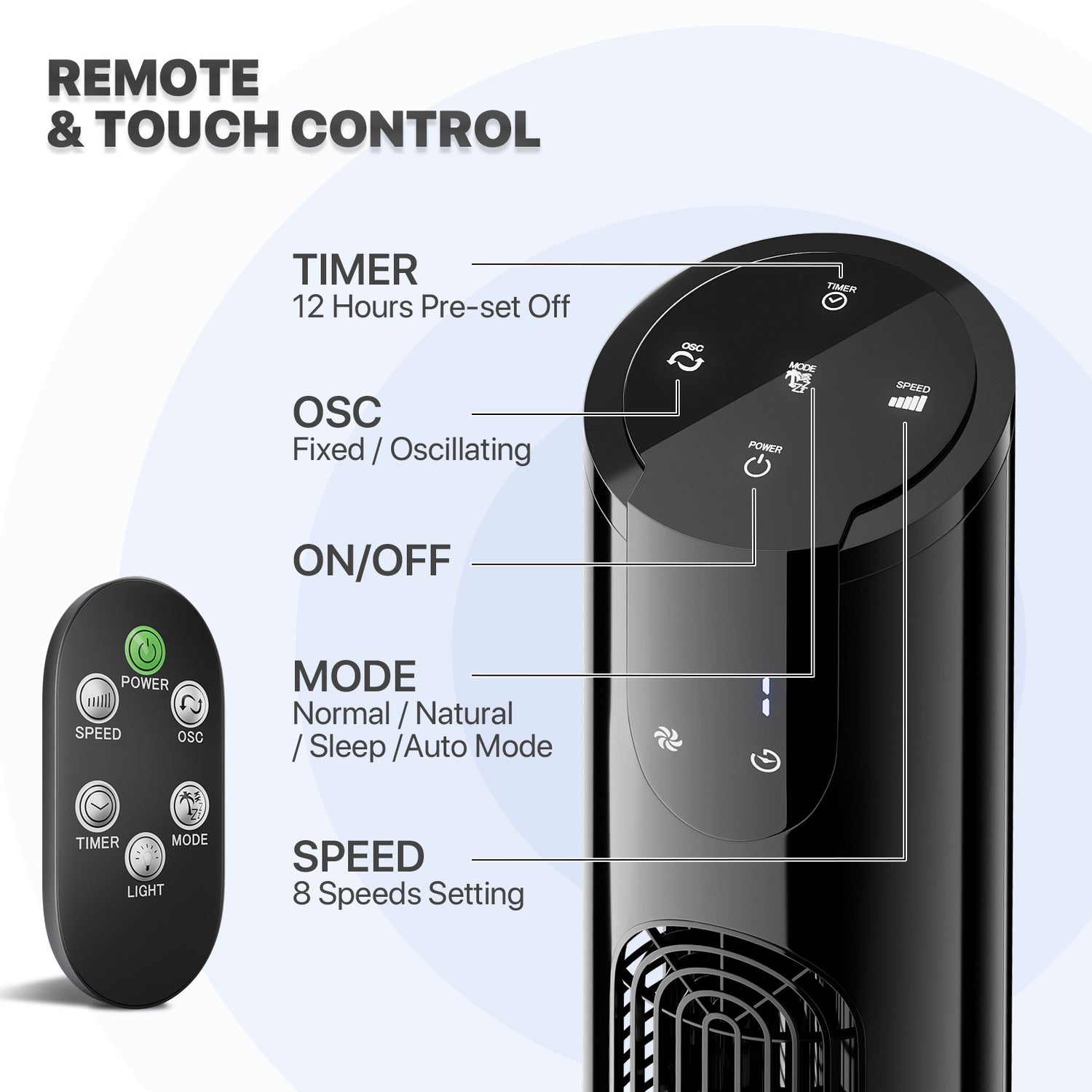Type: Tower Fan with Remote Control Frame Material: ABS