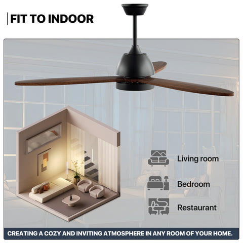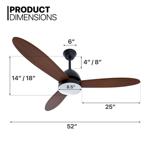52" LED Ceiling Fan - 3 Blades - 3 Color Changing - 6 Speeds w/2 Down Rods