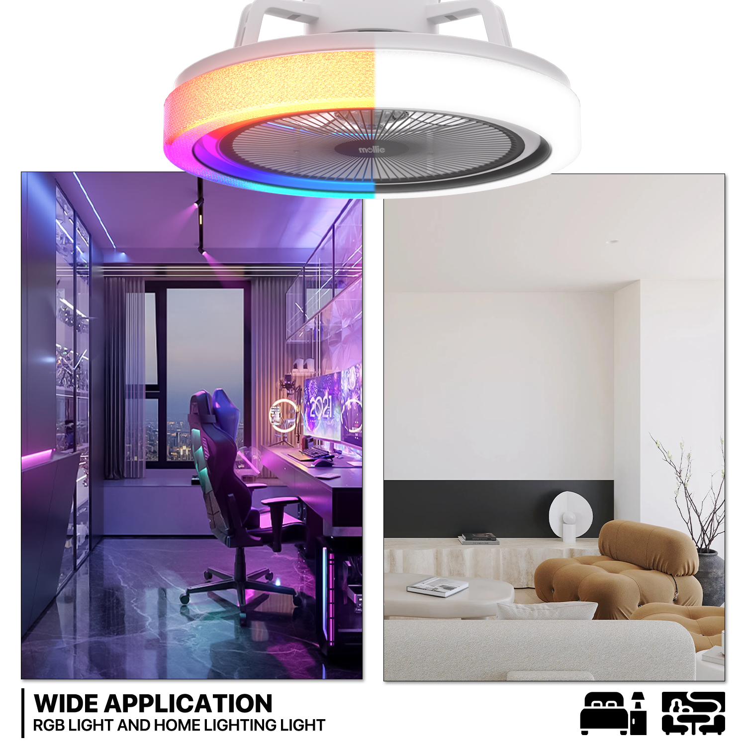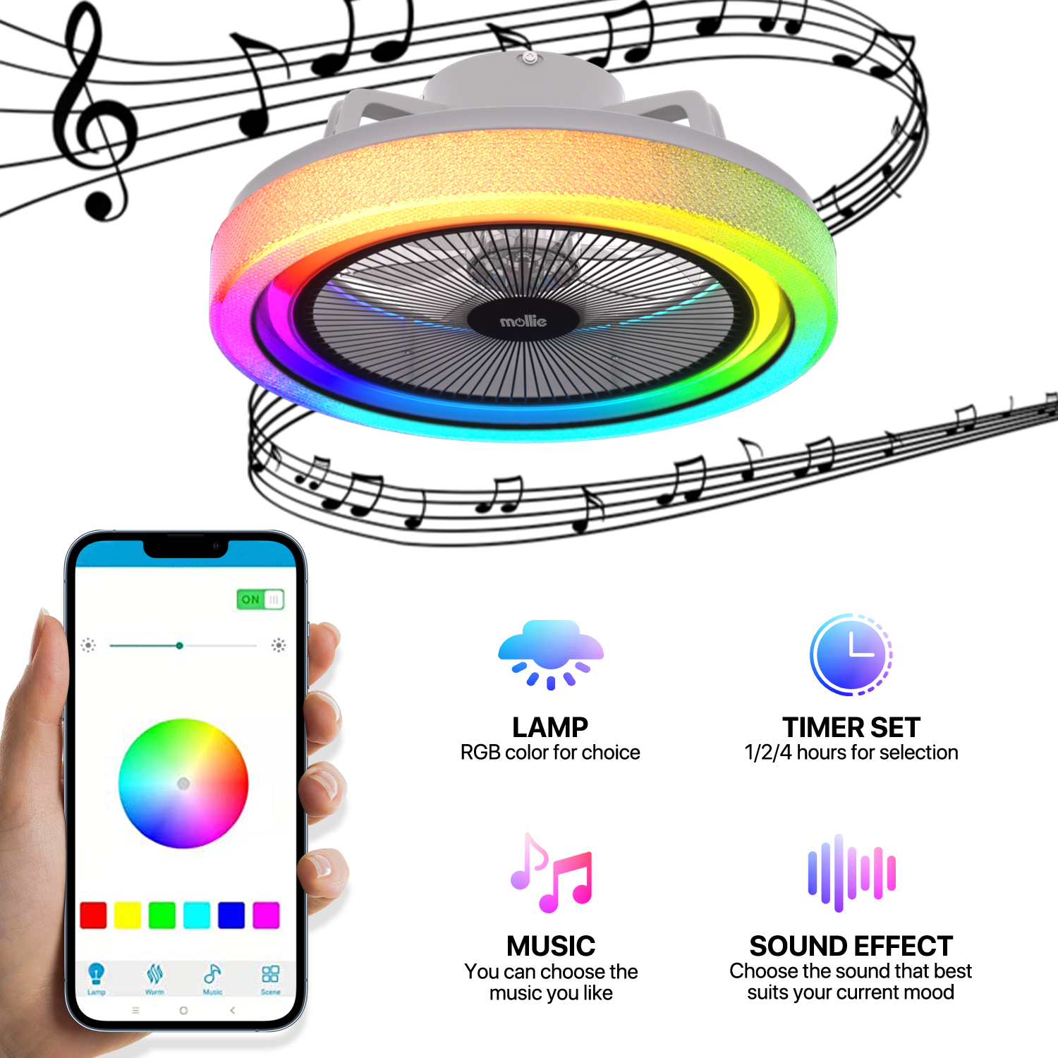 20" LED Ceiling Fan - Bluetooth Control -Music Speaker - Variable Lighting Illusion