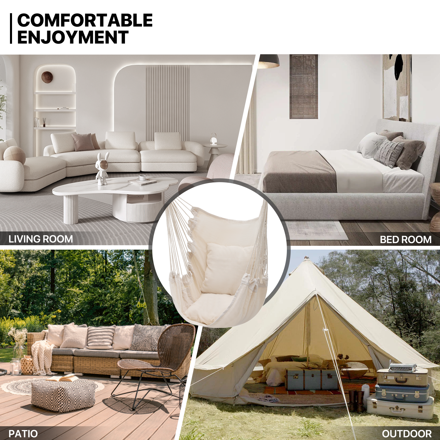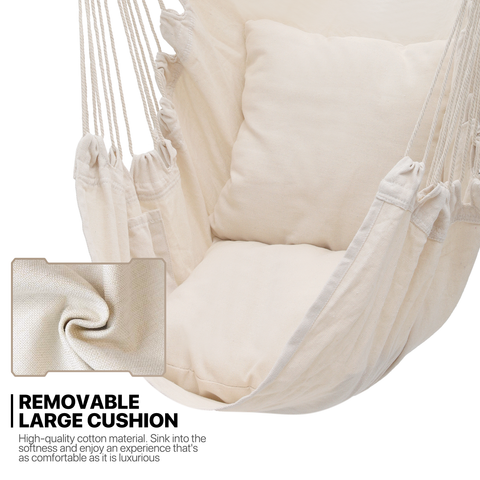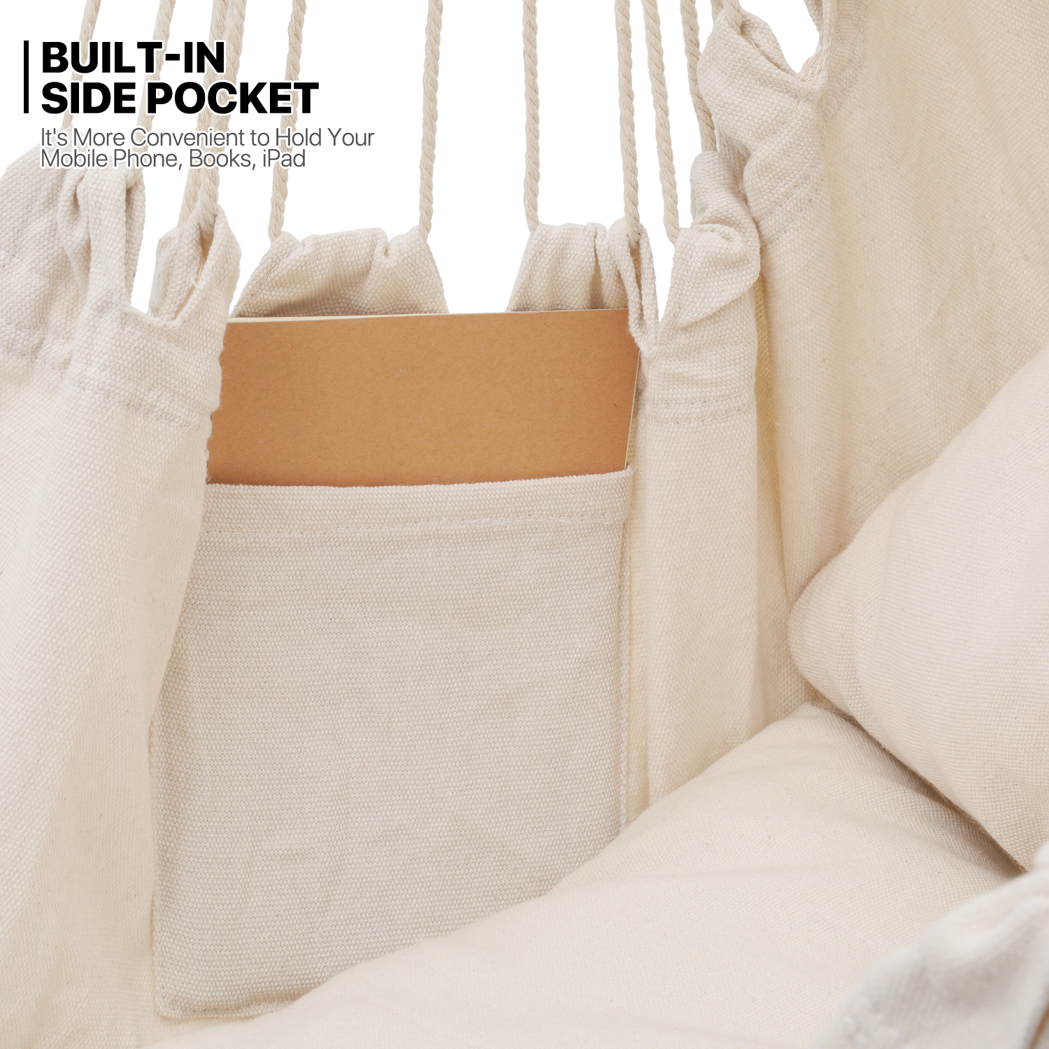 Hanging Rope Swing - Macrame Hammock Chair - Cushion Seat - With Side Pocket