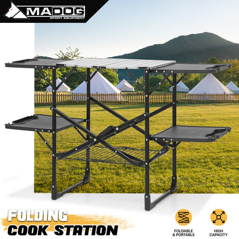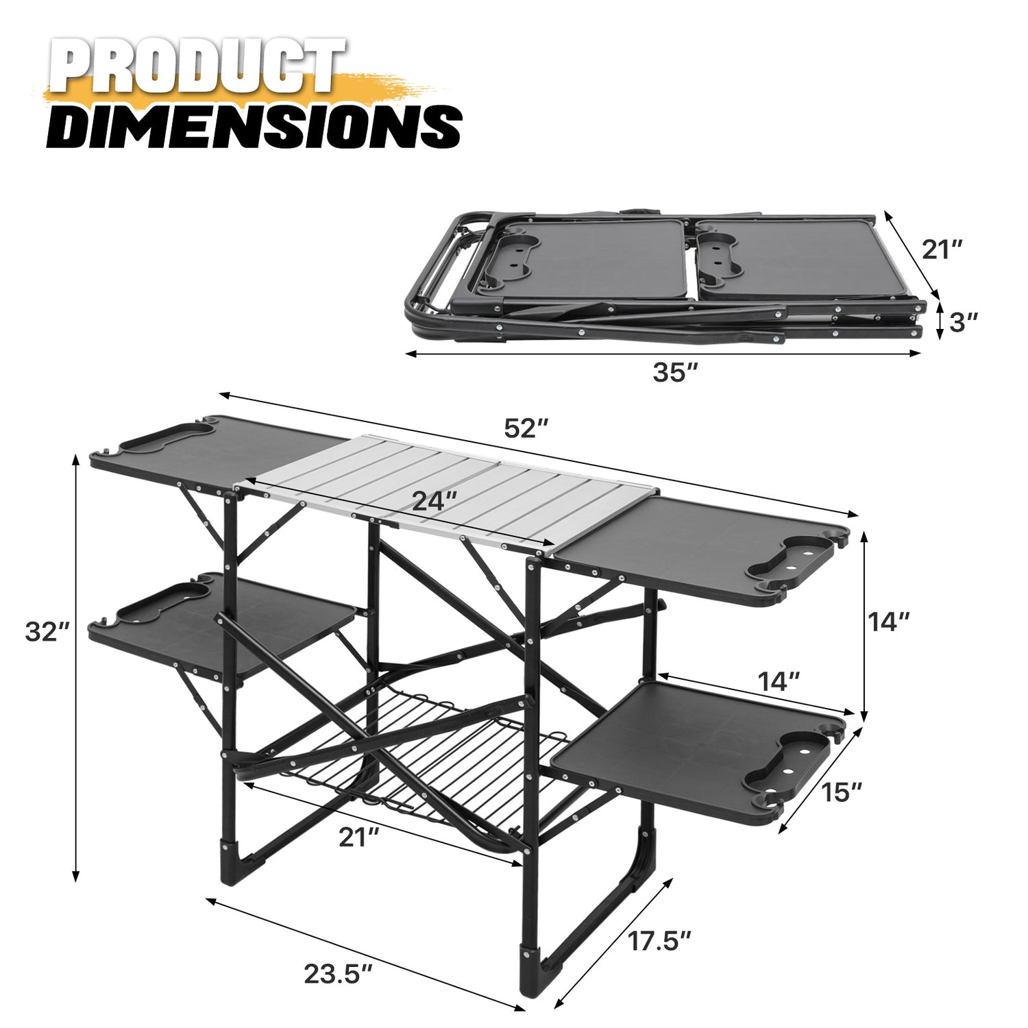 Folding Camping Table 52"x17.5"x32" - Black/silver