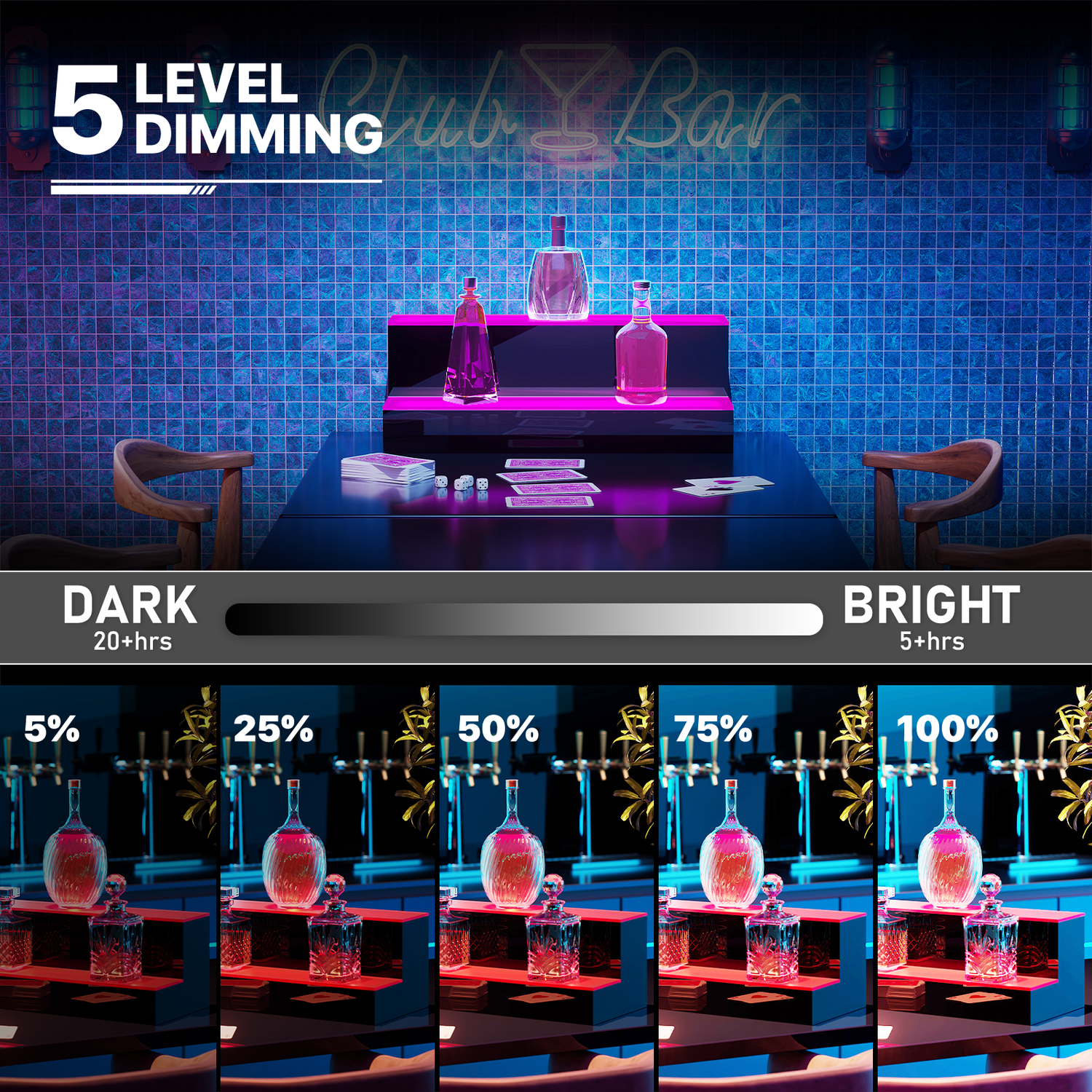 LED Dynamic Mode: 5 Default Modes and Up to Save 6 DIY Modes