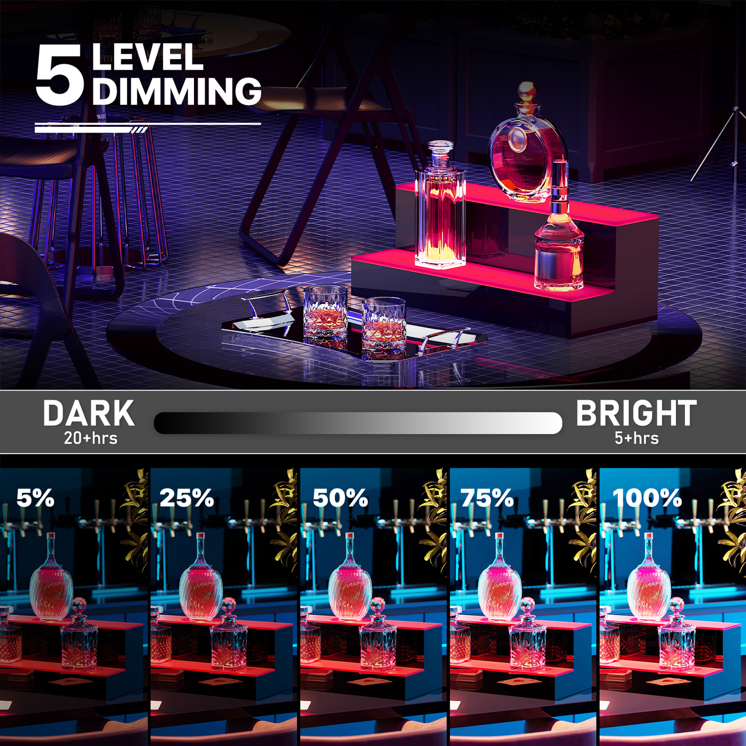 20" LED Lighted[20 COLORS]Commercial Back Bar Liquor Bottle 2 Step Display Shelf