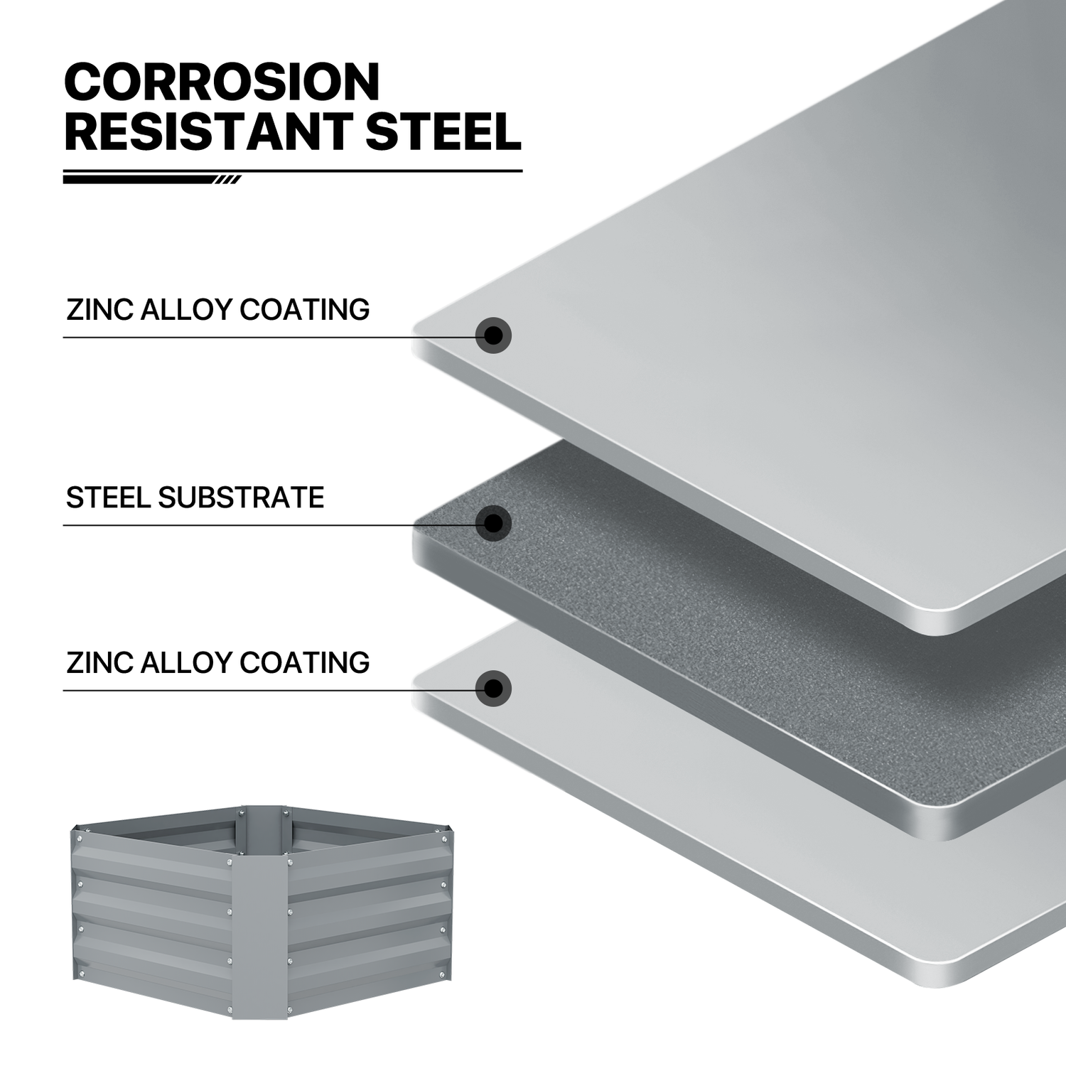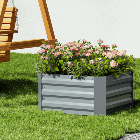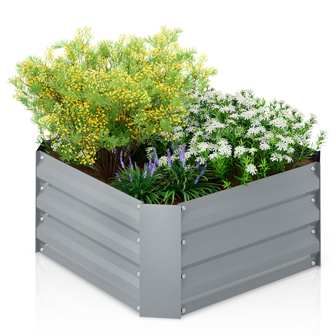 12"H Patio Metal Raised Garden Bed Kit Vegetable Flower Planter 24" Square Box