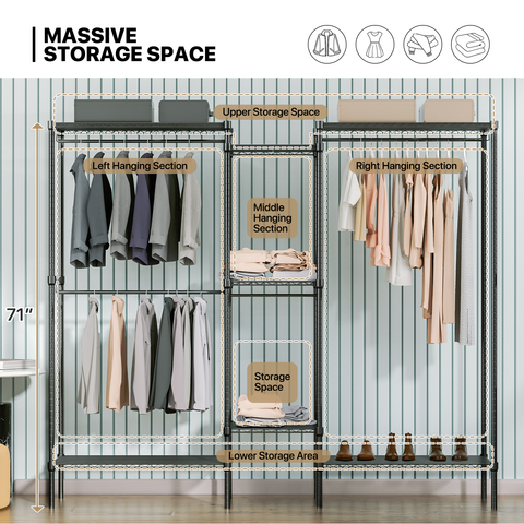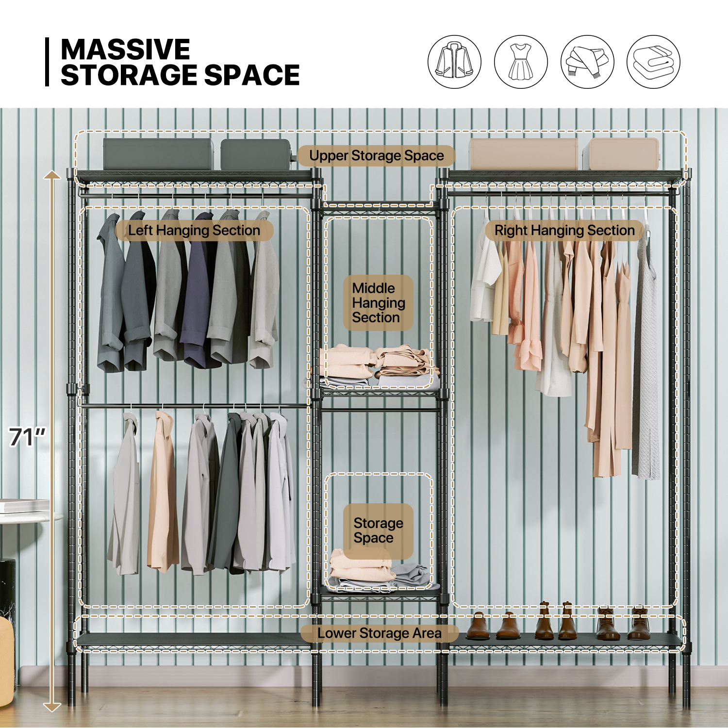 Carbon Steel Adjustable Clothes Rack - 79'' Length