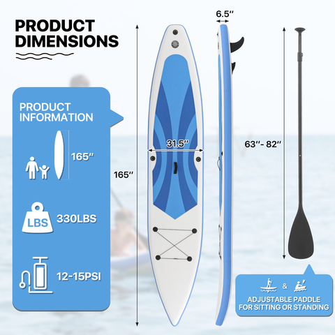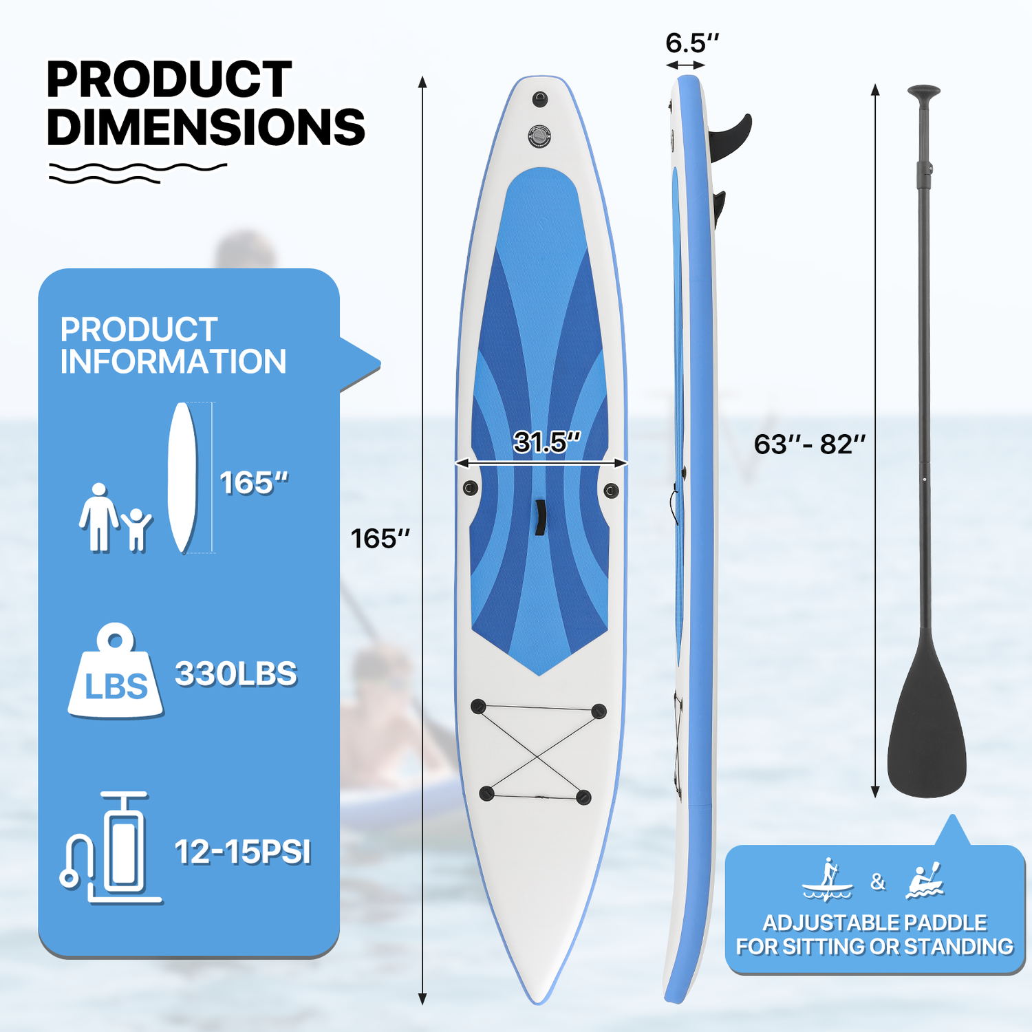 13.75ft Stand Up Paddle Board - PVC Material -Displacement 330L, Max Load Capacity 397 lb, Max Air Pressure 15PSI