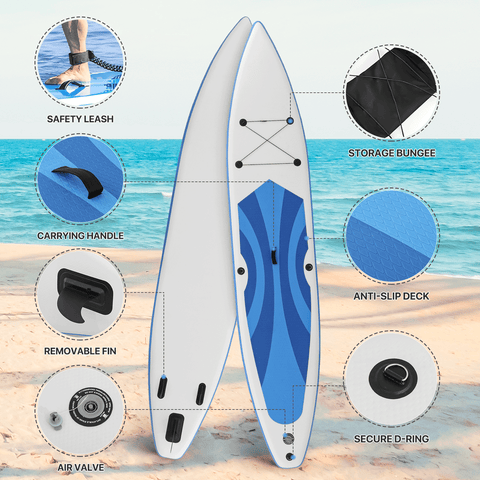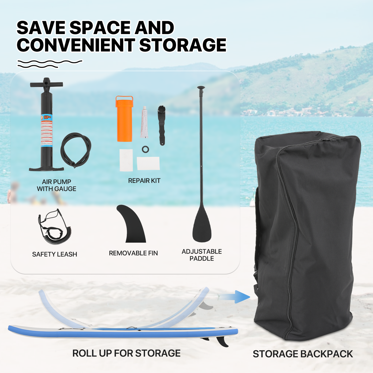 Package Included: 1 x Stand Up Paddle Board, 1 x Adjustable Paddle, 1 x Carry Bag, 1 x Removable Fin, 1 x Safety Leash, 1 x Hand Pump with Gauge, 1 x Repair Kit