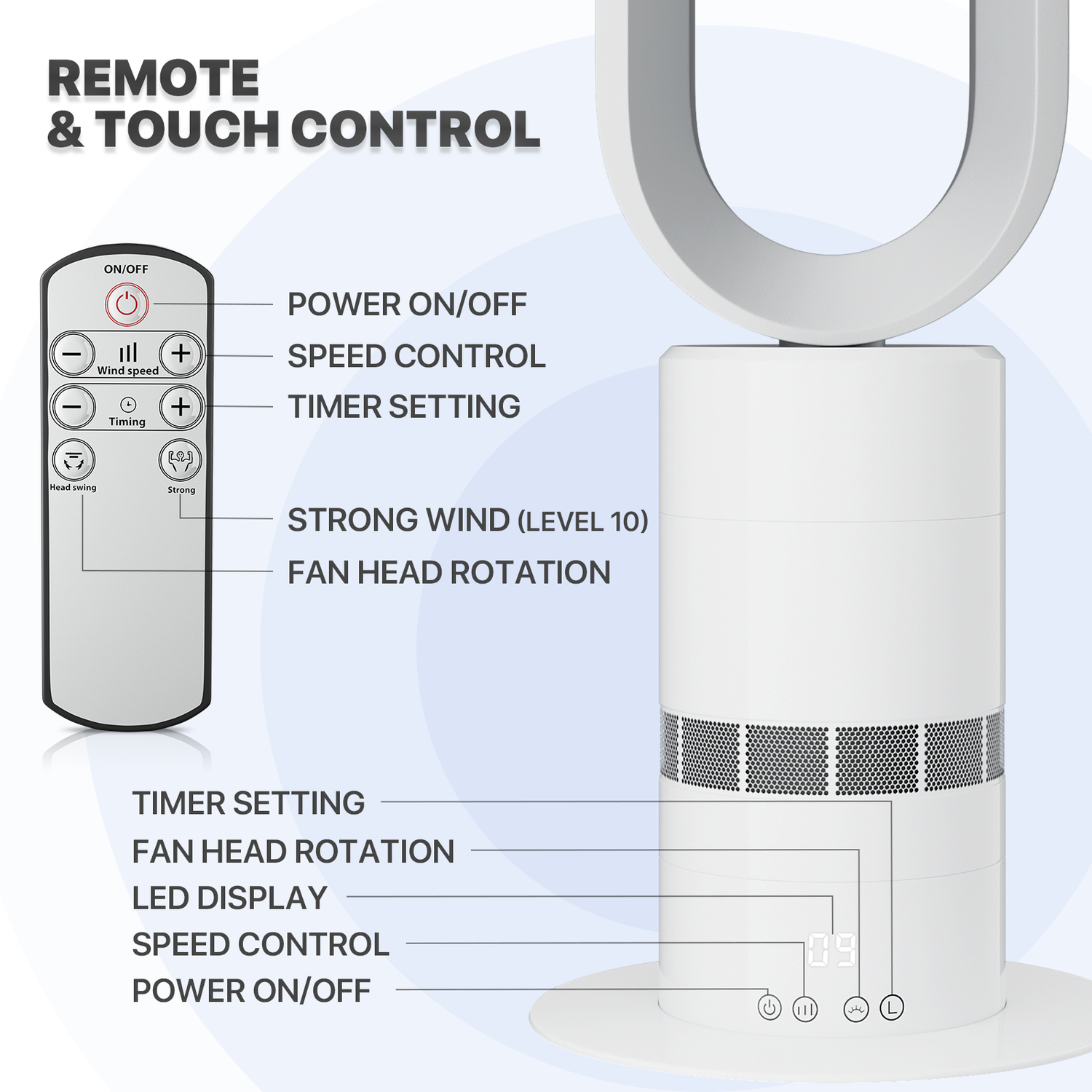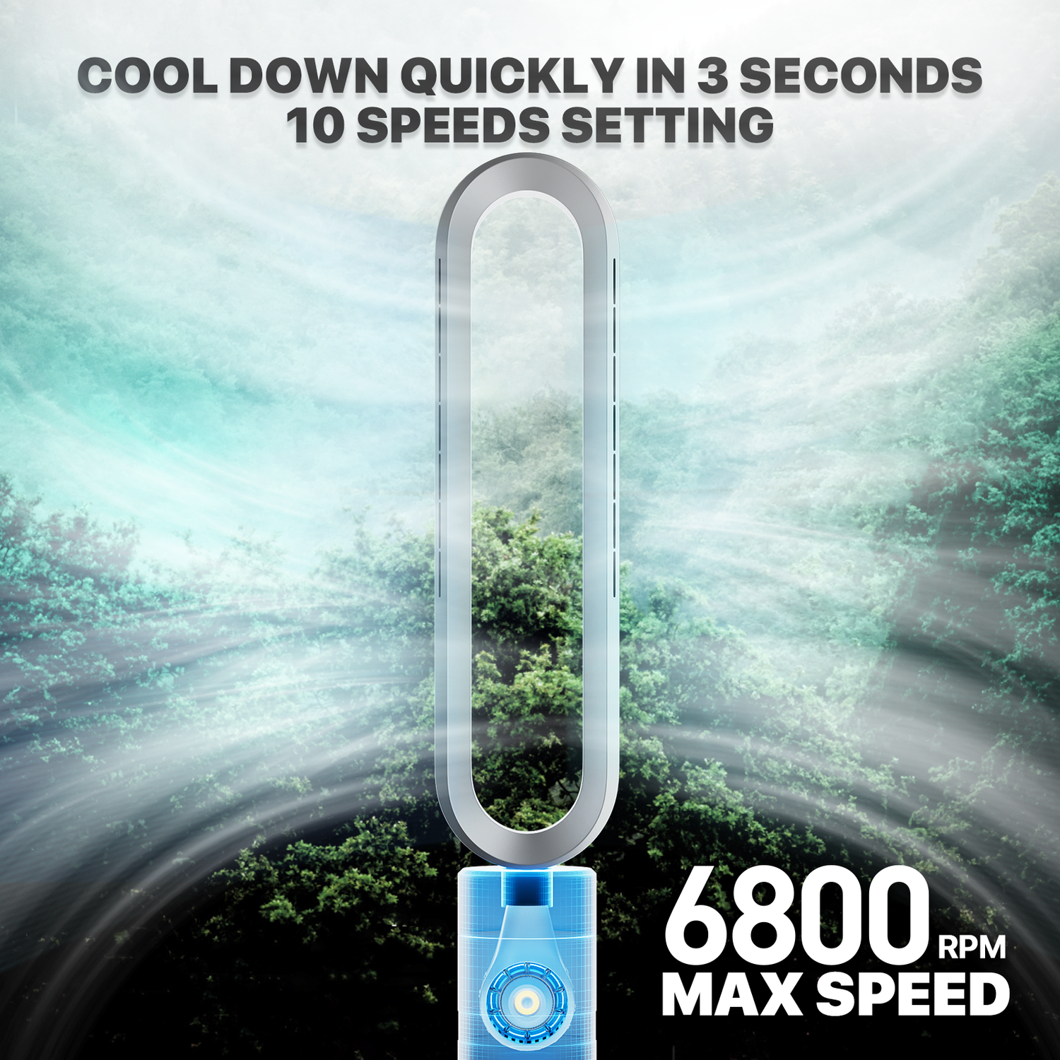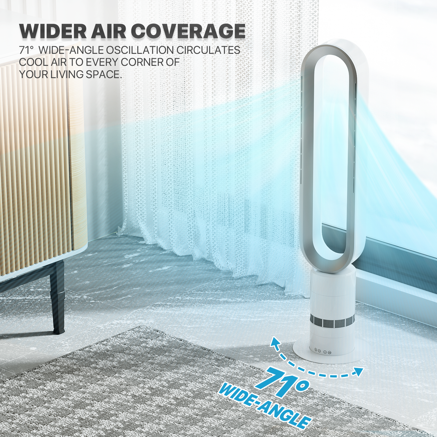 This innovative fan combines safety, elegance, and performance in one package. With its unique bladeless design, the fan is not only safer for homes with children or pets but also a breeze to clean. It operates more quietly and evenly distributes air across the room, ensuring constant and soothing comfort. The fan comes with variable speed settings and an oscillation feature, allowing you to customize your cooling experience.
