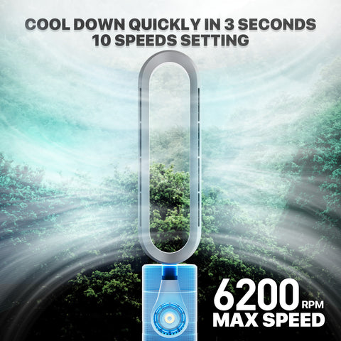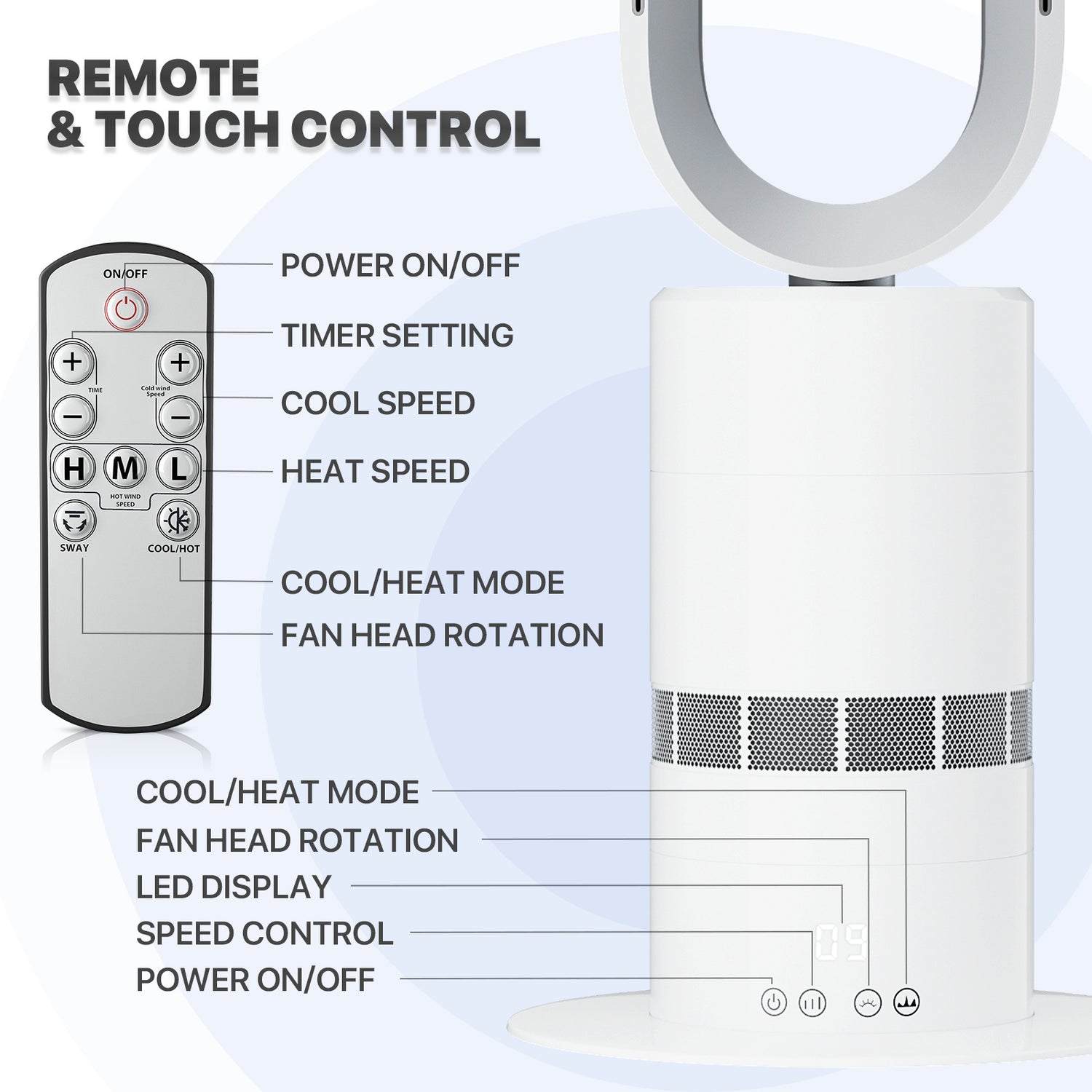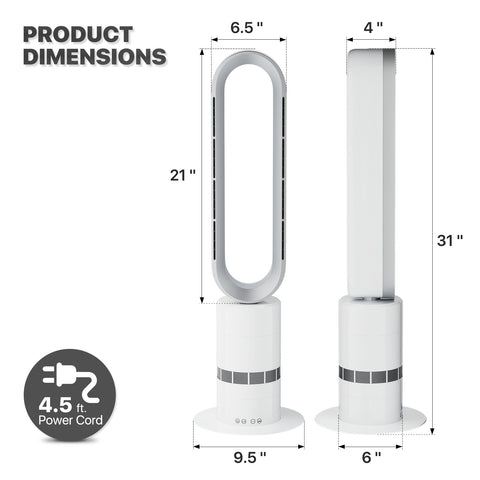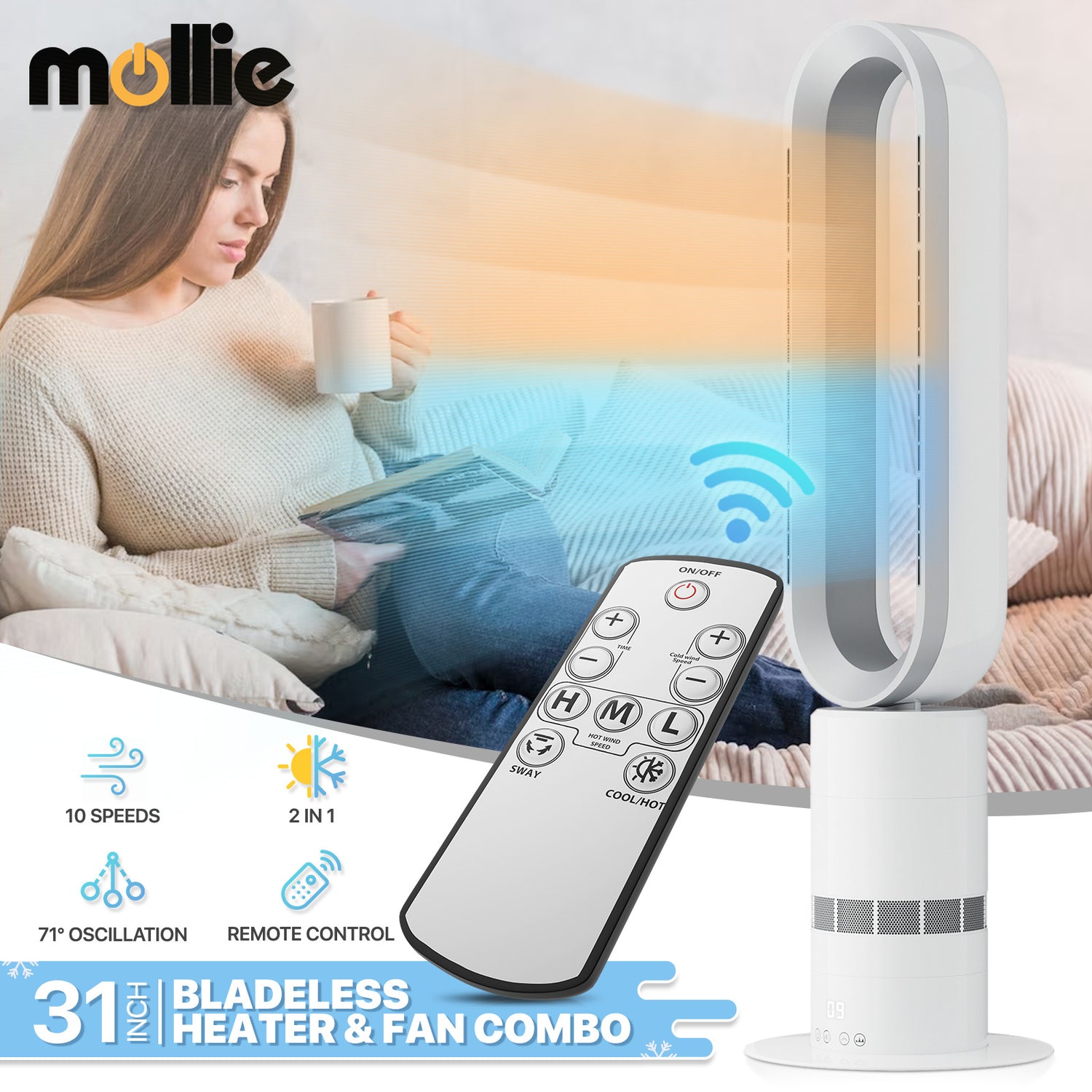 31.5 Inch Bladeless Fan - Space Heater - 10 Speeds Cooling & 3 Speeds Heating
