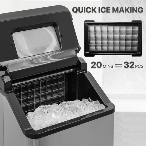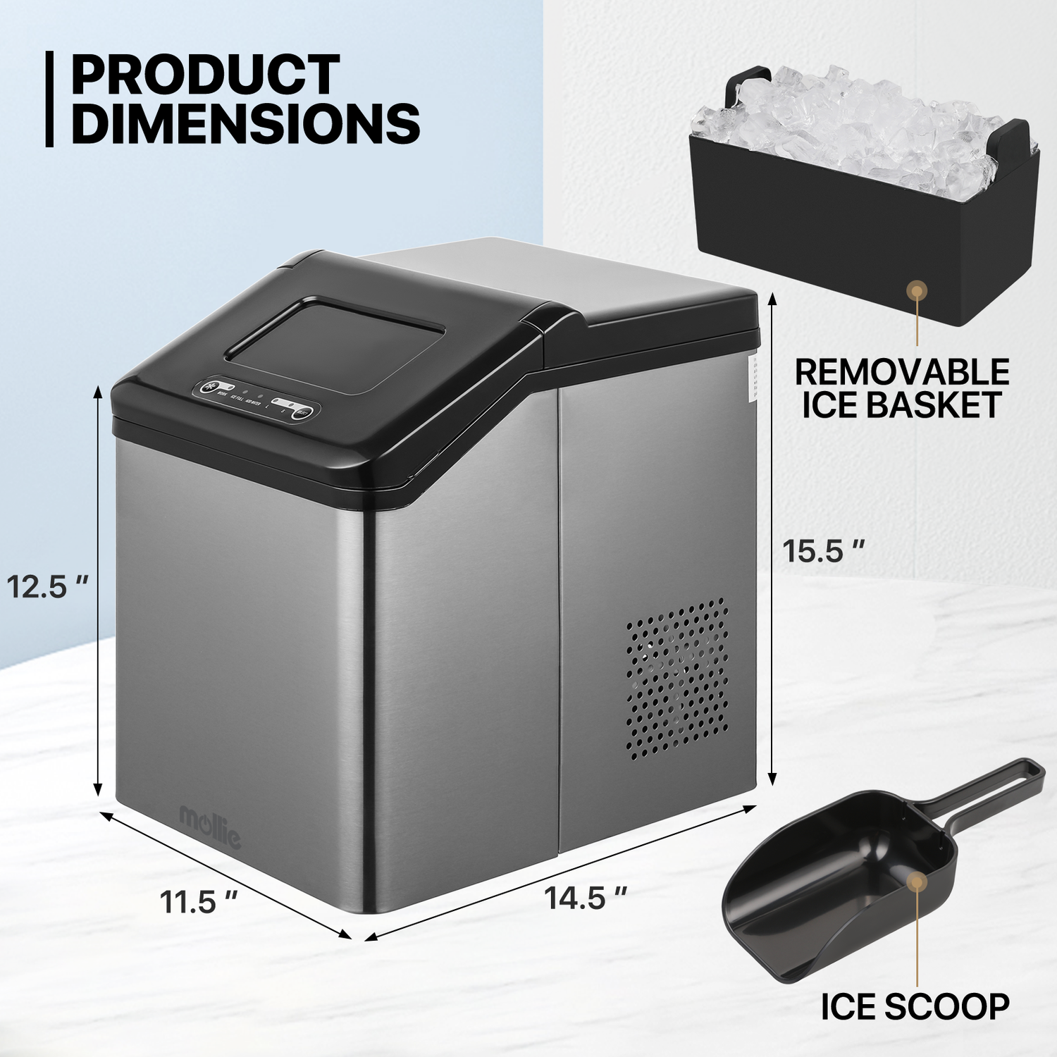 Ice Maker Machine - 2.5L Storage Tank - Bullet Shape - 33lbs/ 24hrs - with Scoop