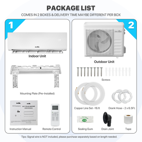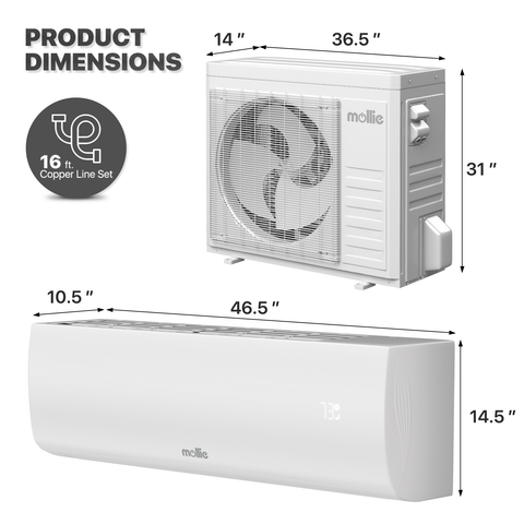 Indoor Unit Size: (L)46.5" (W)10.5" (H)14.5"