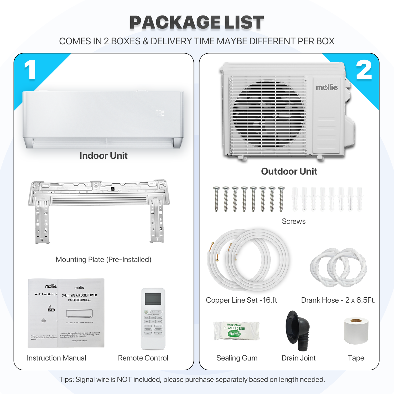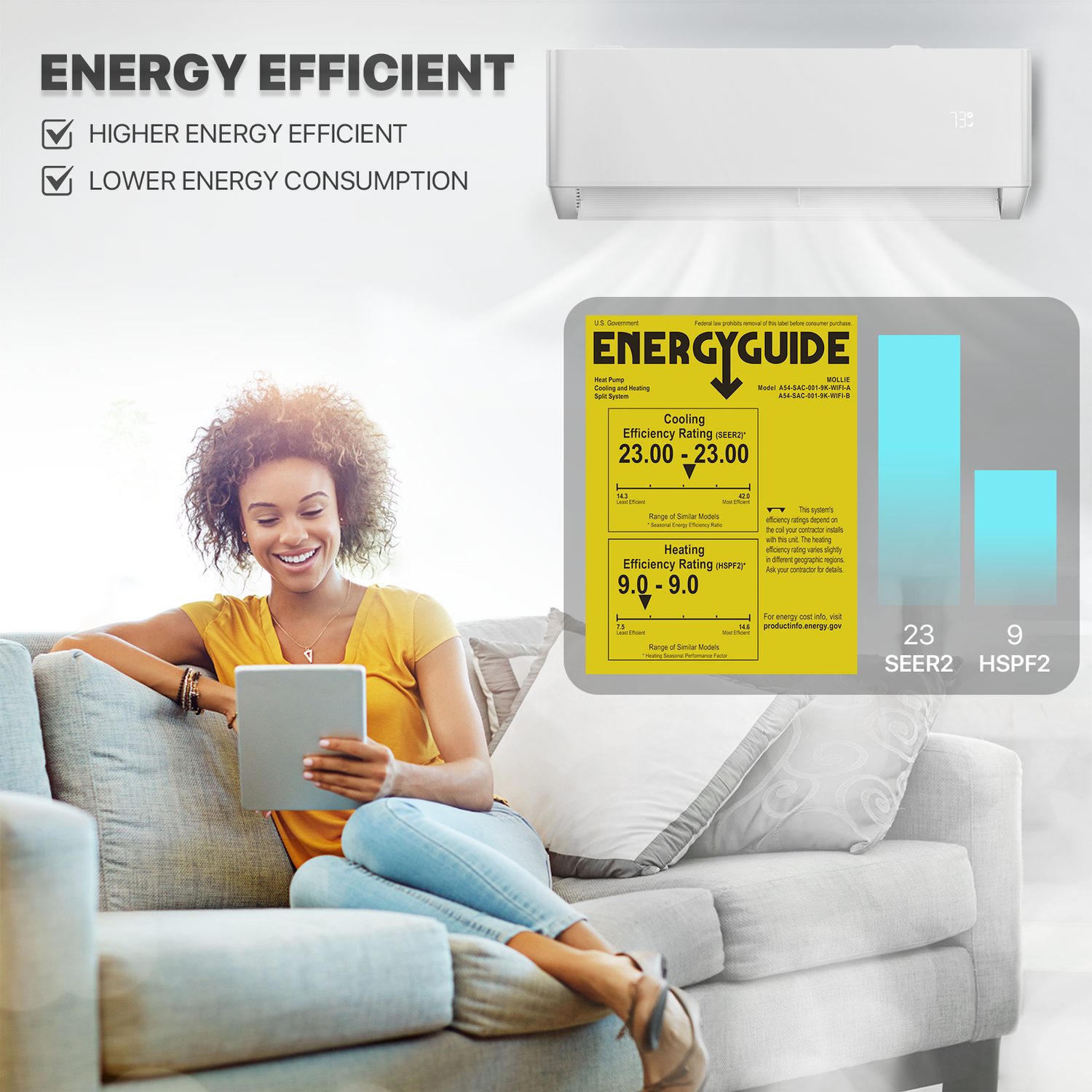 9000 BTU Split Air Conditioner - Cooling & Heating Function- WIFI APP Control - 4-in-1 filter
