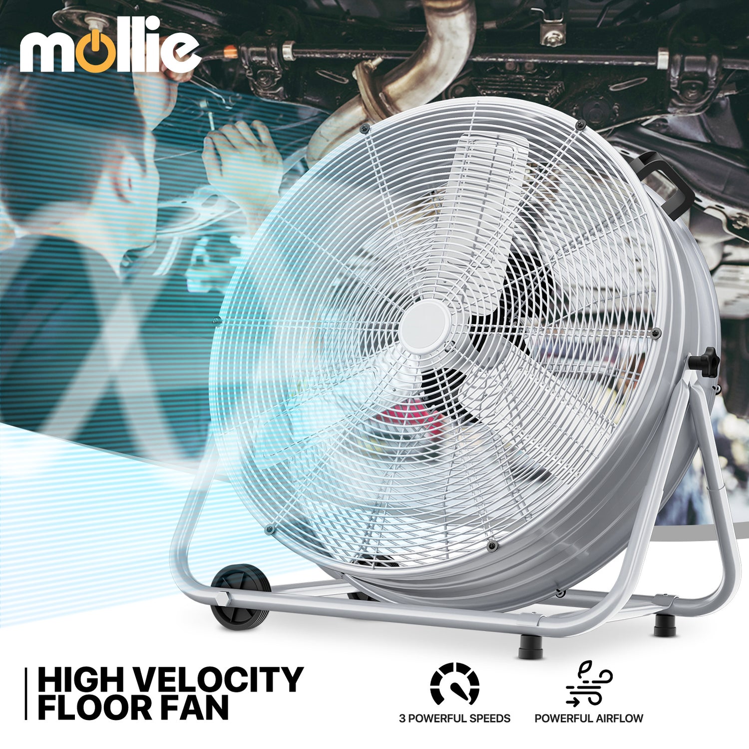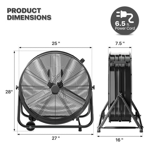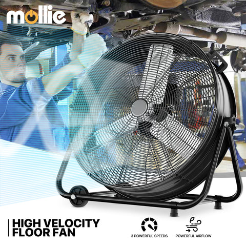 24" Rolling Floor Fan - 3 Speeds - Adjustable Tilt