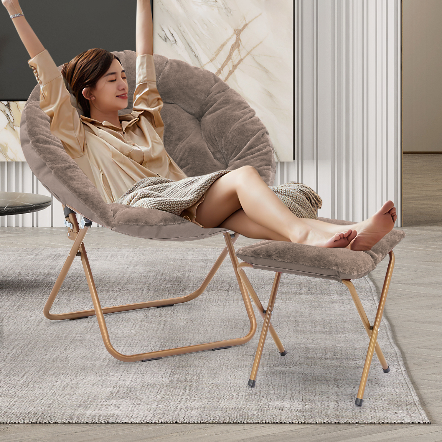 Comfortable Cozy Design - This oversized saucer chair will hug your body as you relax while watching TV, reading, playing video games, or lounging. Made with soft synthetic fur fabric, this chair is extra cozy for sitting and lounging.