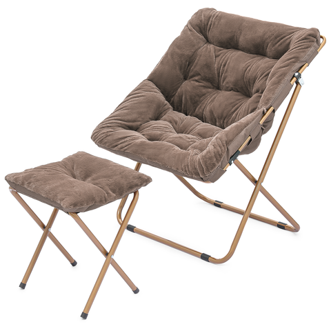 Cozy Chair + Ottoman - Square - Faux Fur - Gold Frame