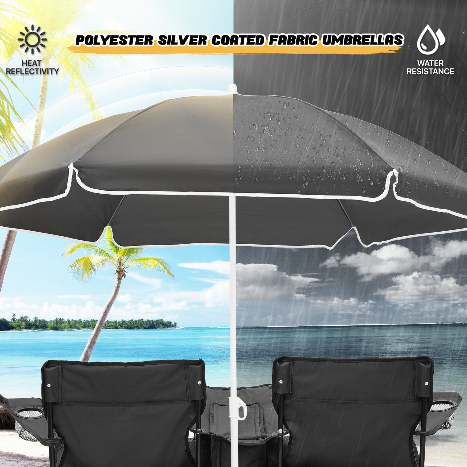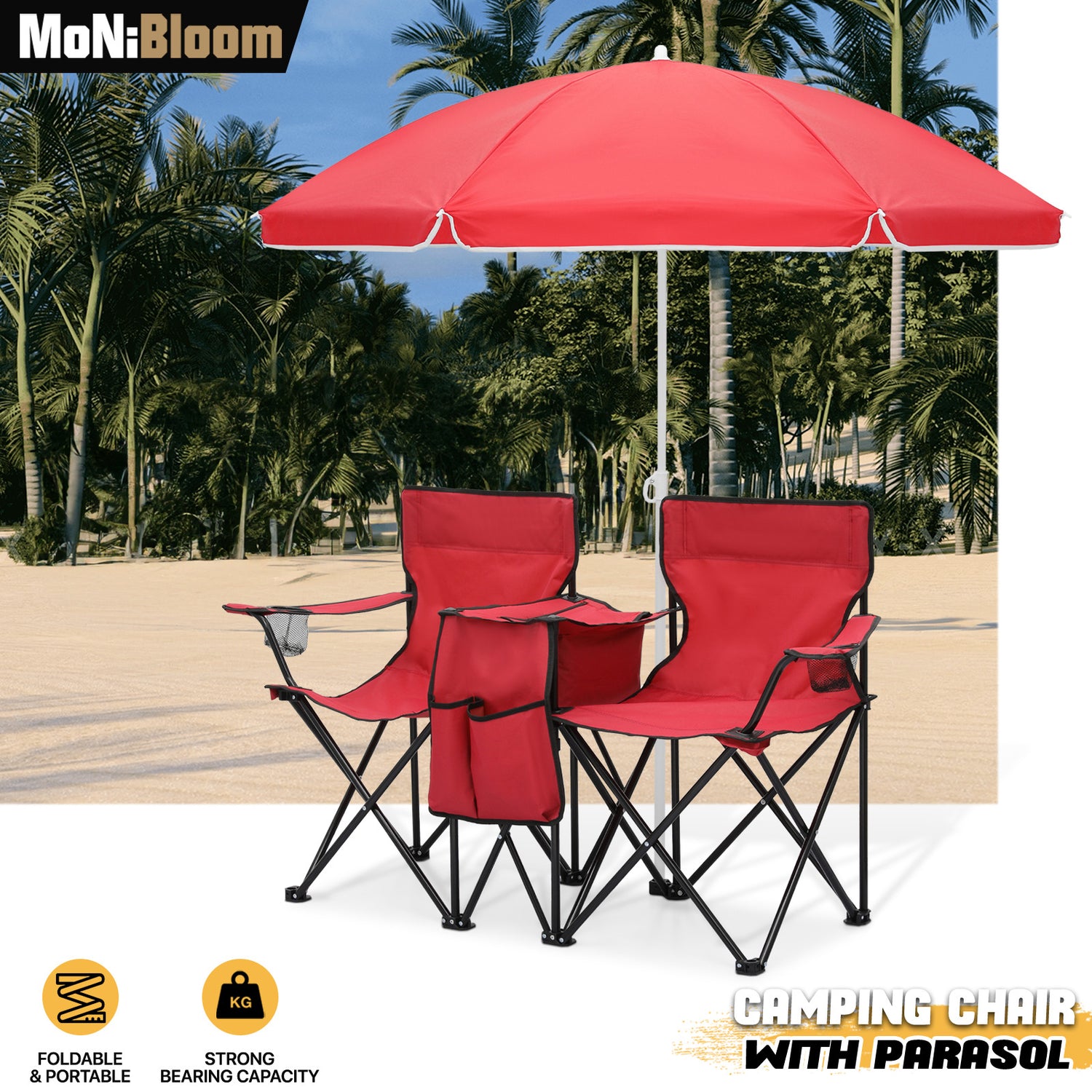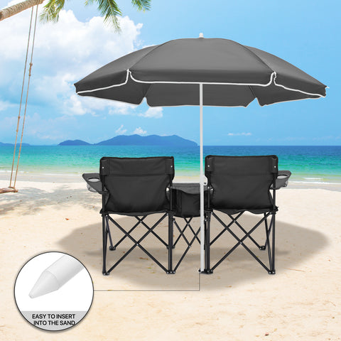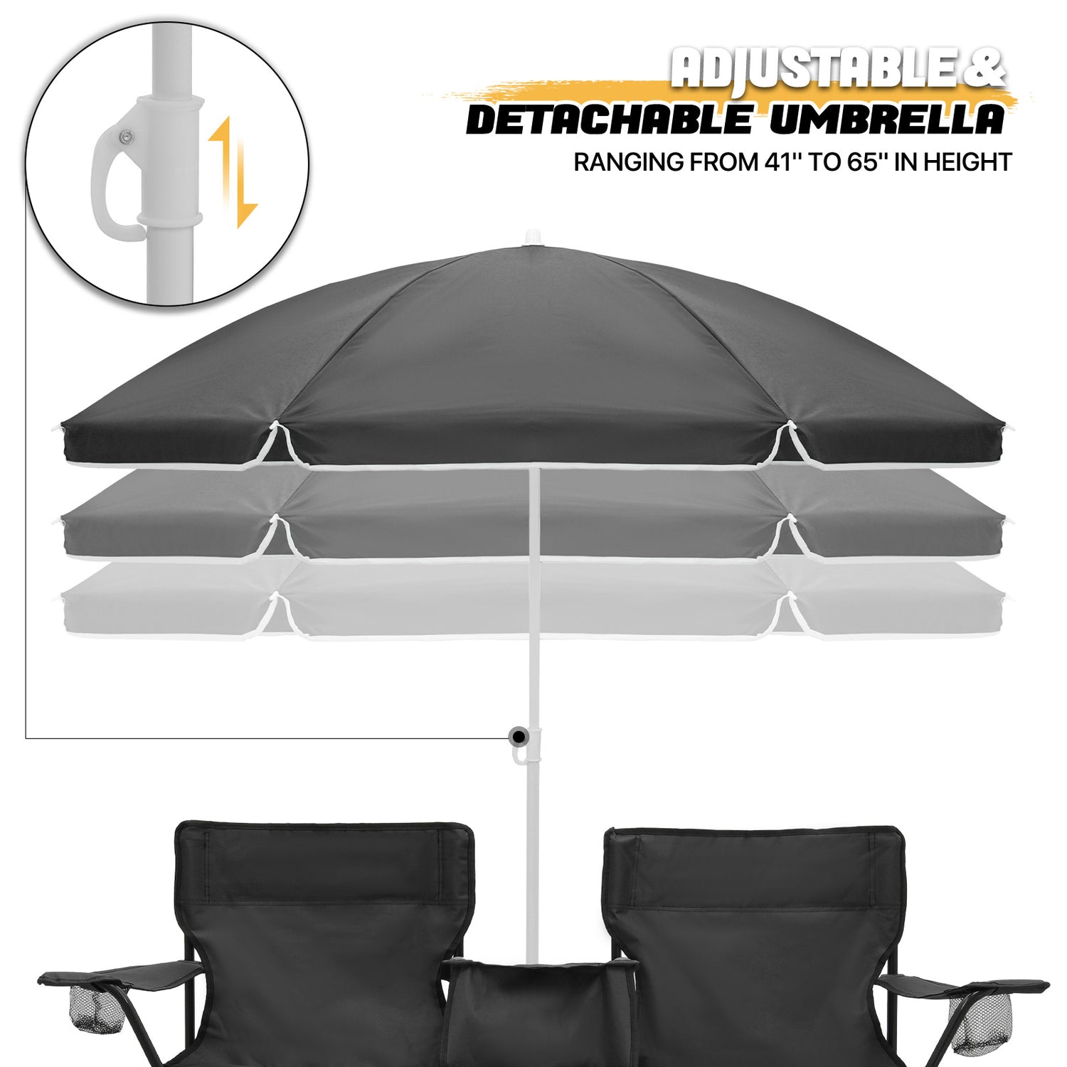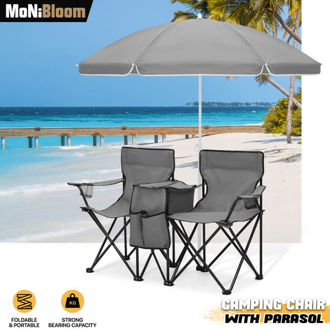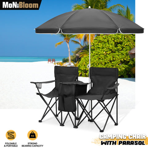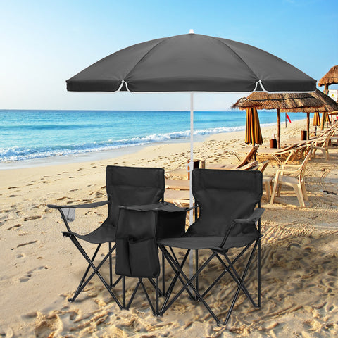 Double Chair With Umbrella - Steel Tube - Oxford Fabric