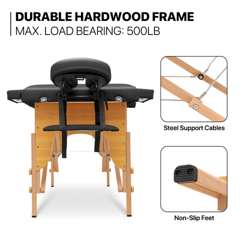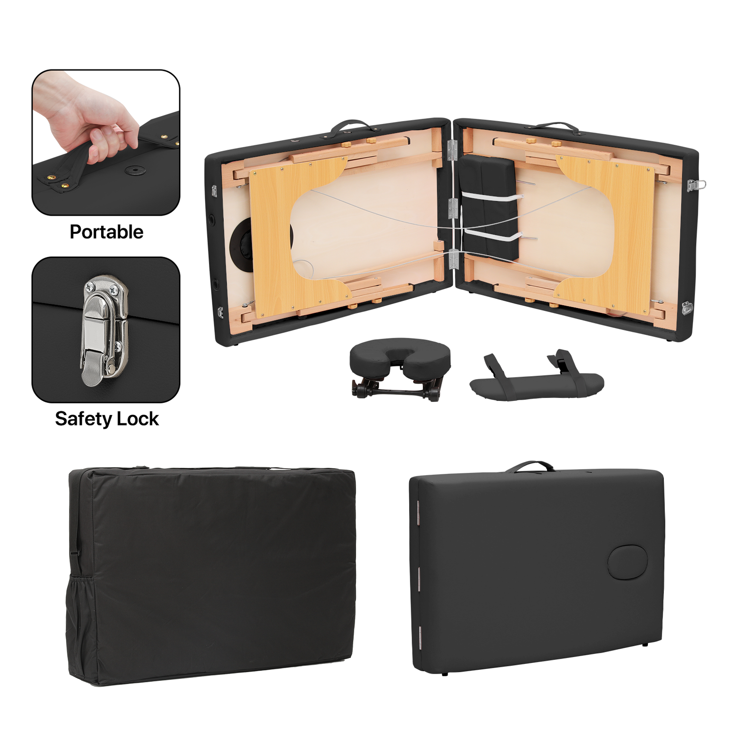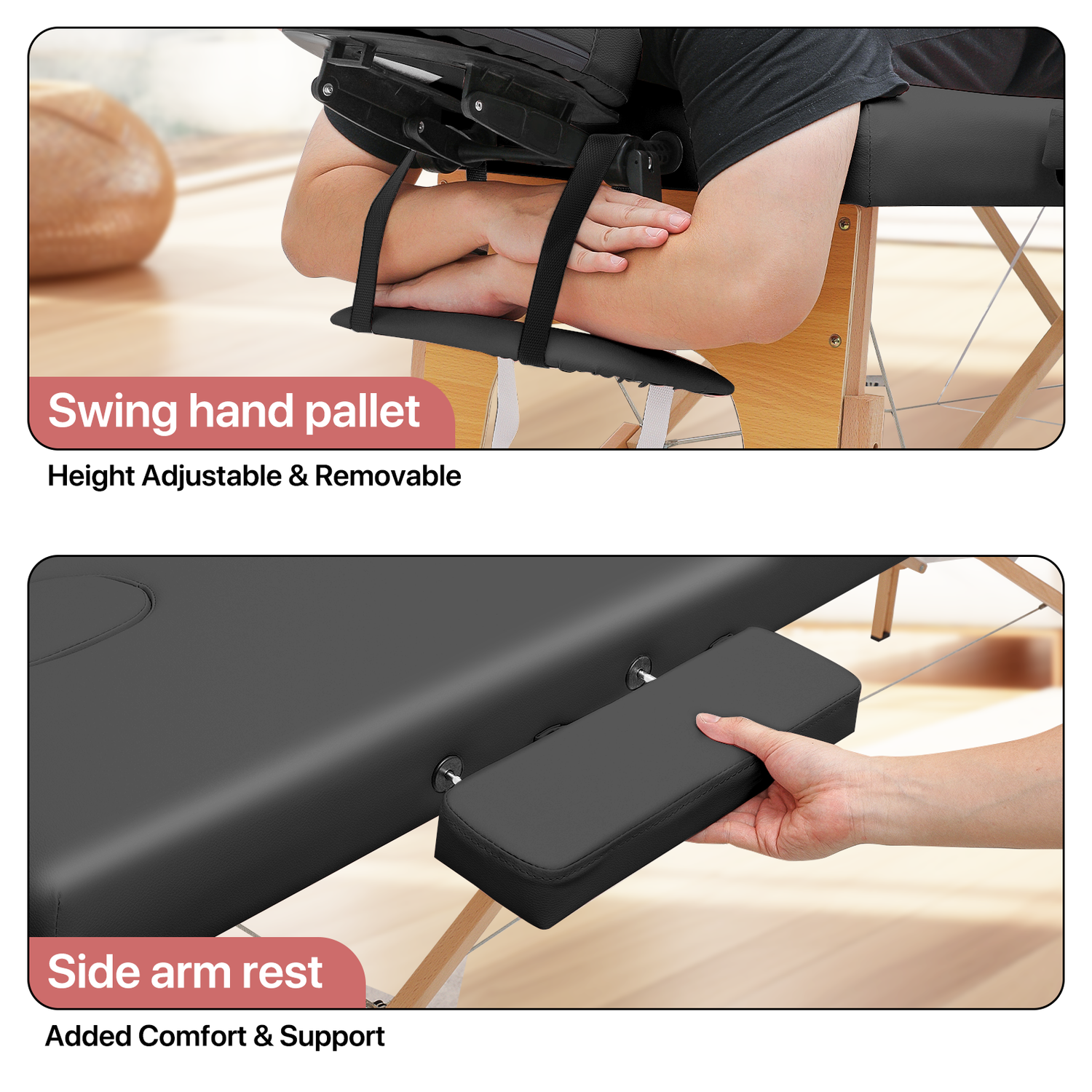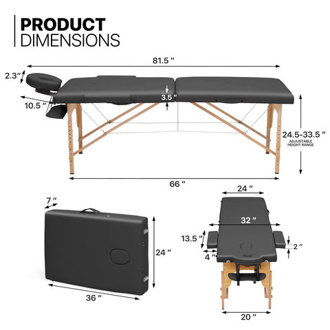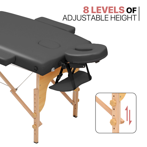 Portable Massage Table - Adjustable Height 24.5" to 33.5" - Wooden Frame