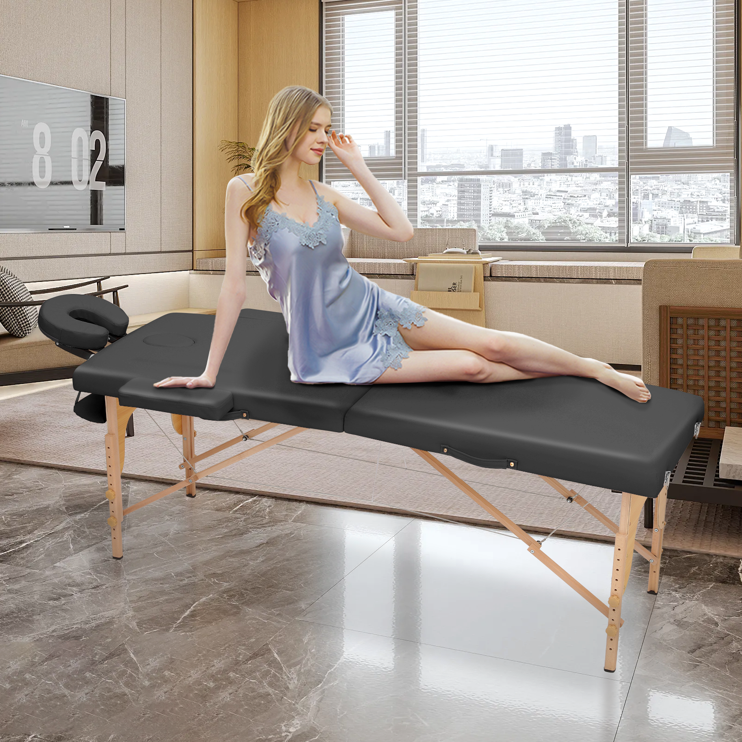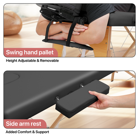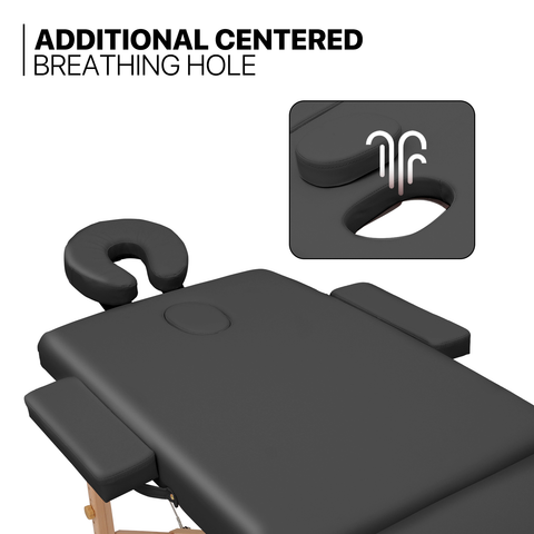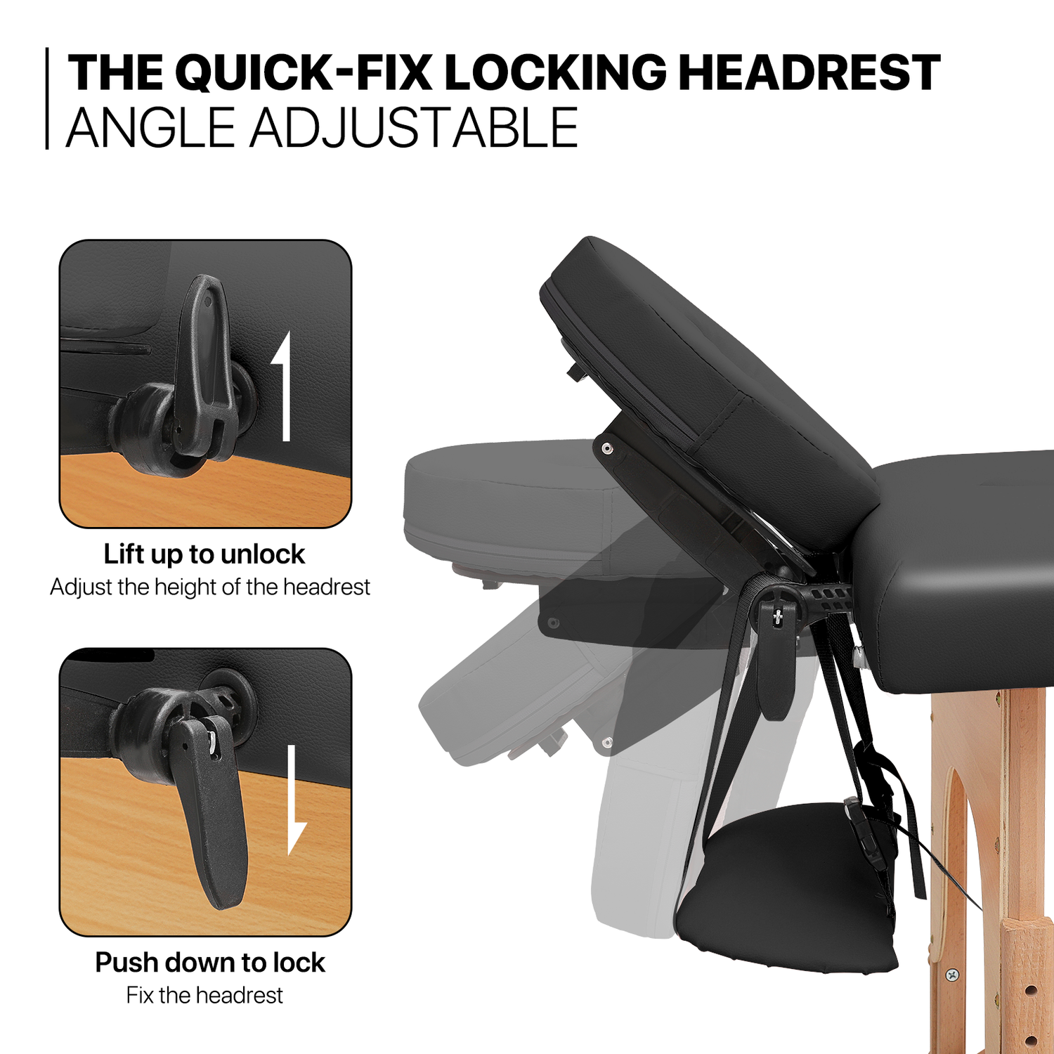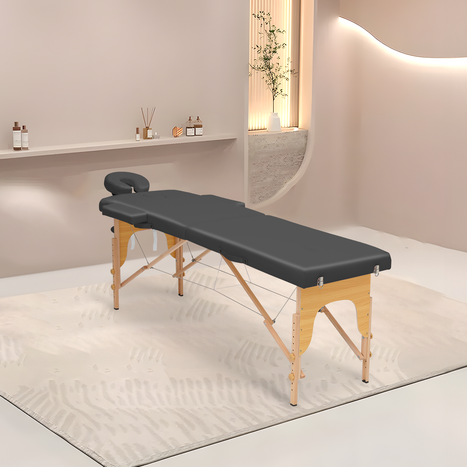 Portable Massage Table - Adjustable Height 24.5" to 33.5" - Wooden Frame