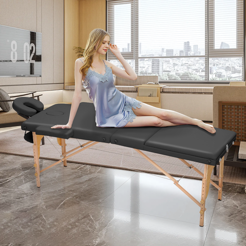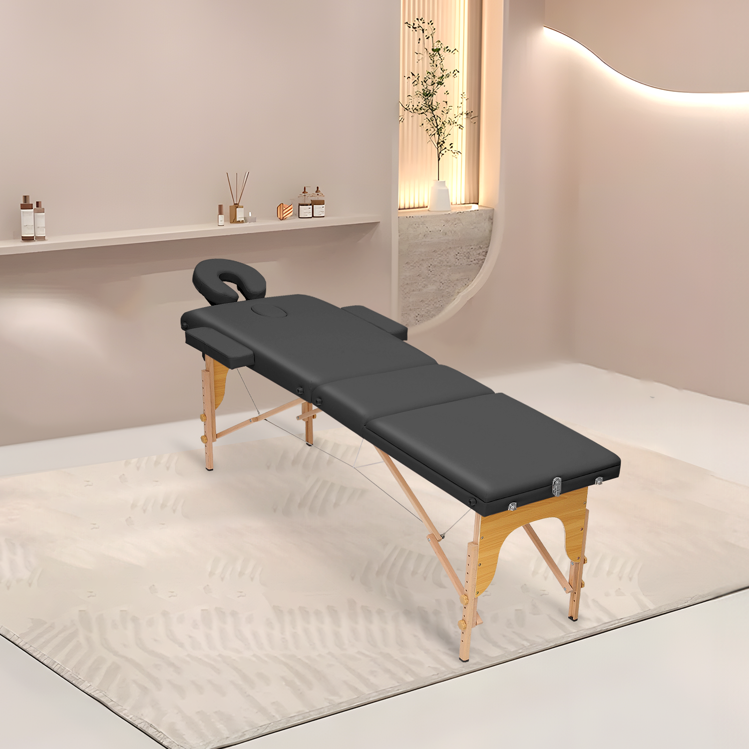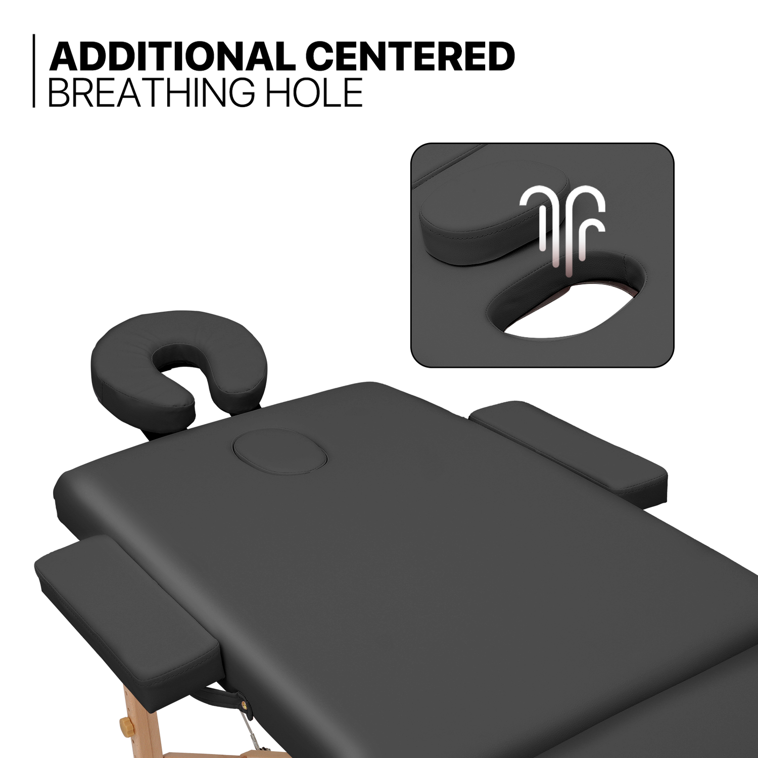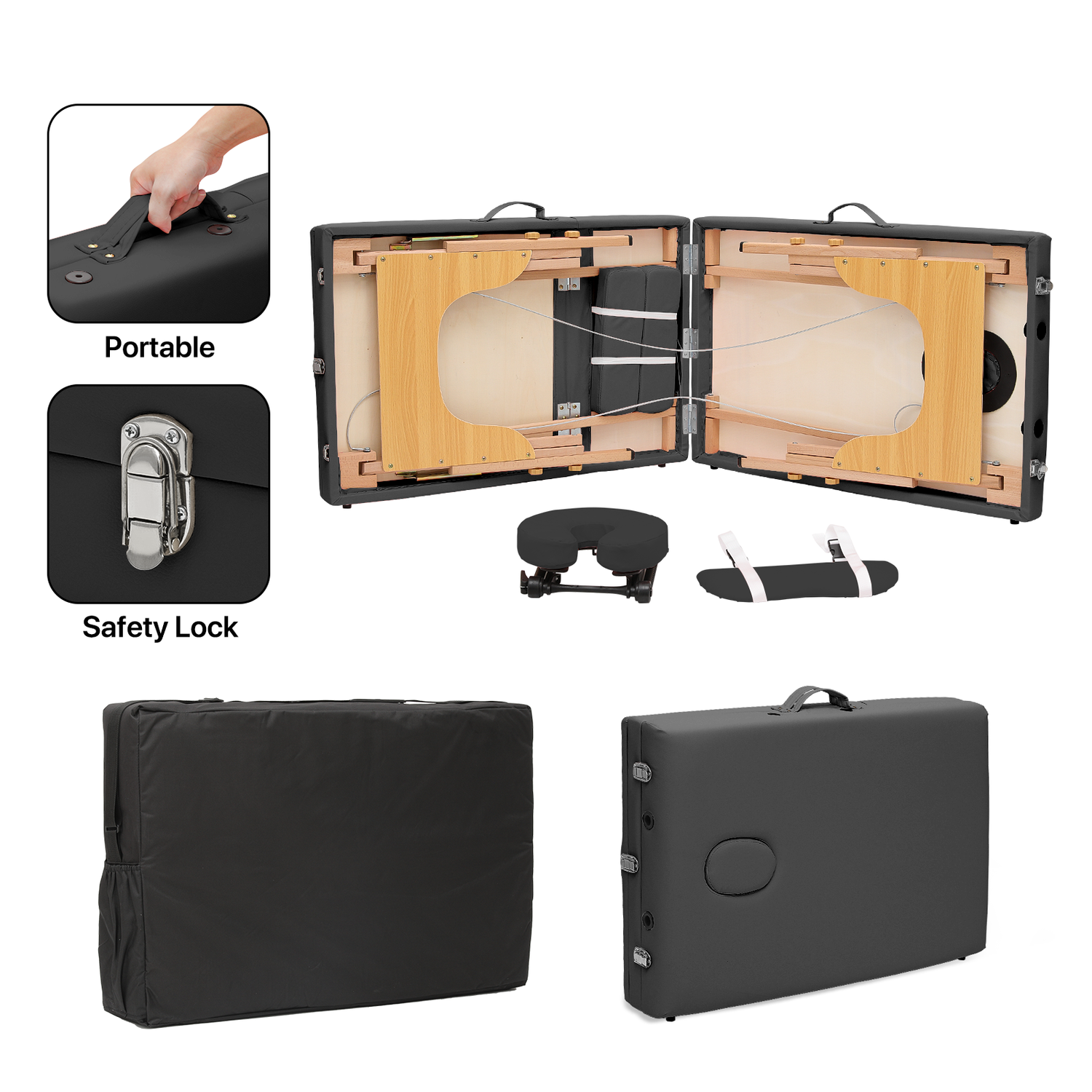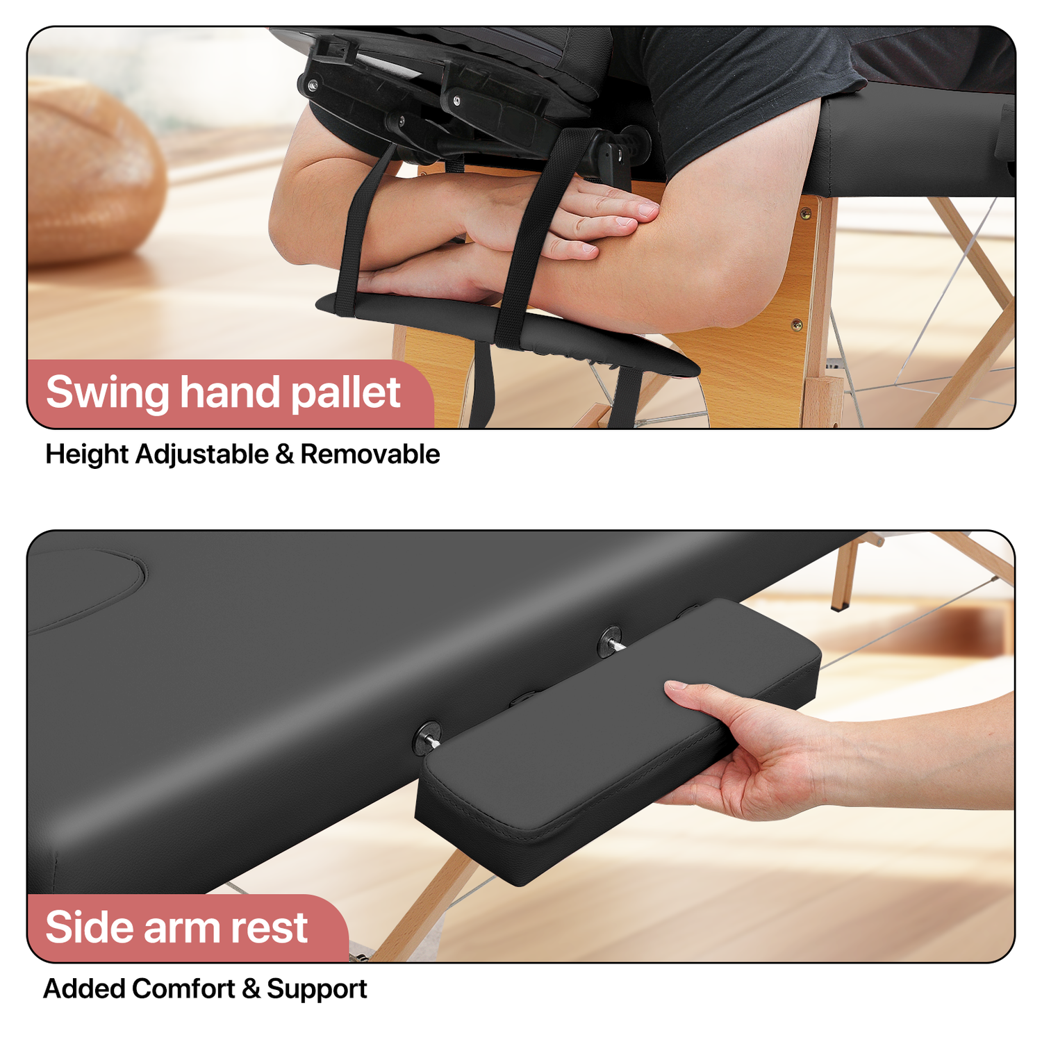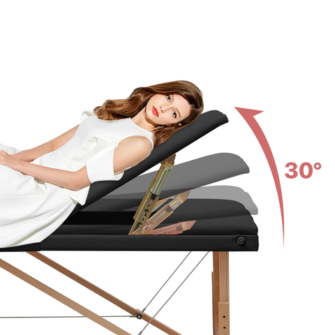 Portable Massage Table - Adjustable Height 24.5" to 33.5" - Tilt Back - Wooden Frame
