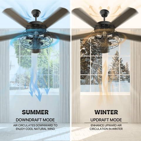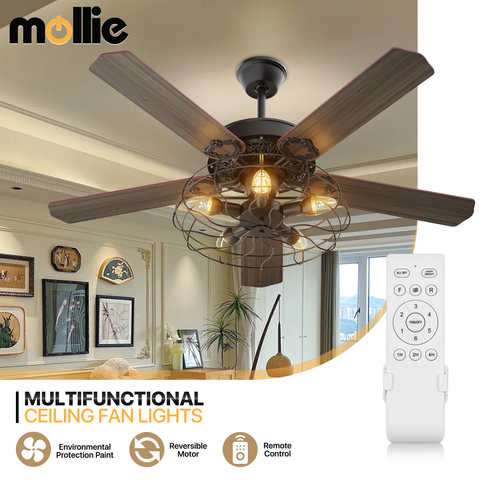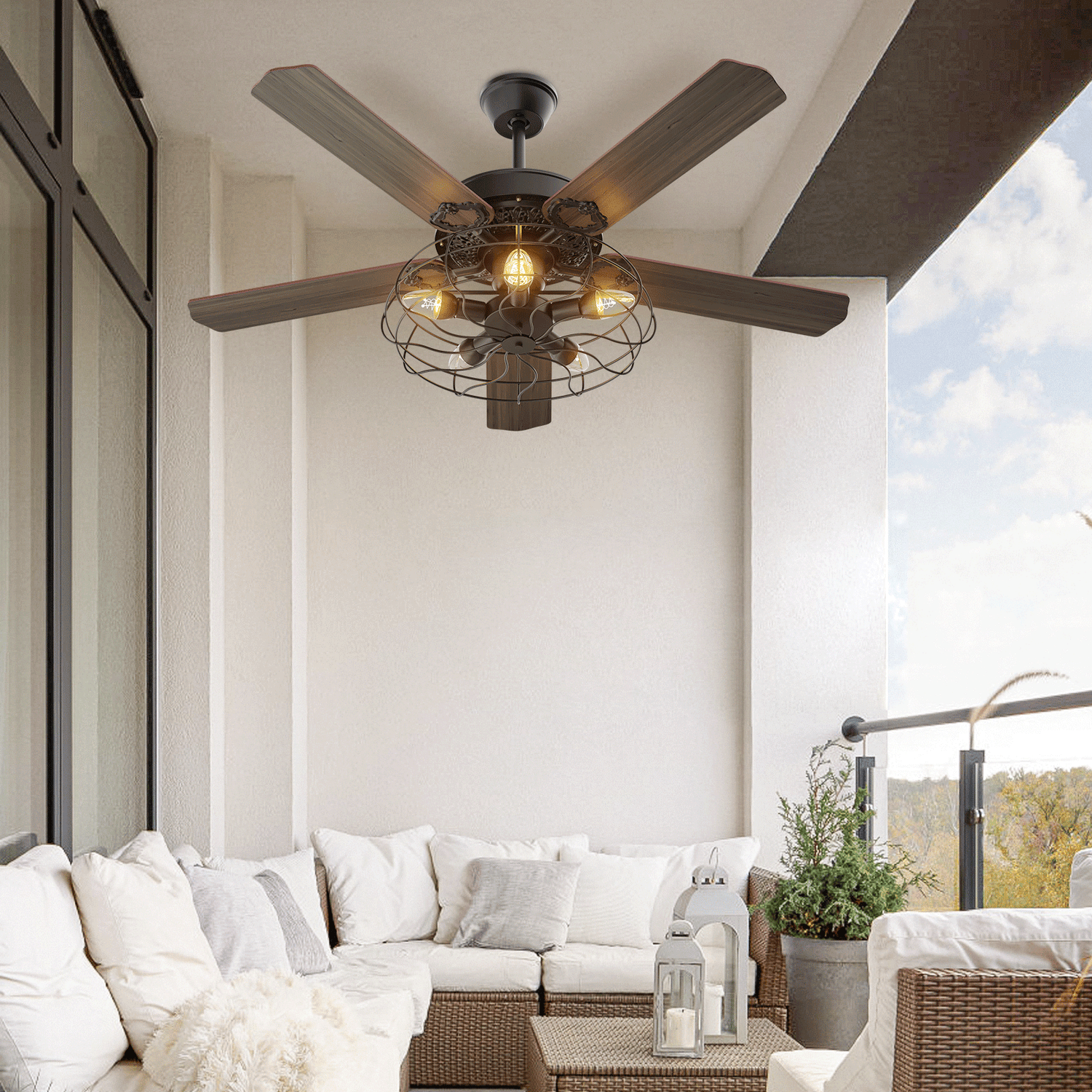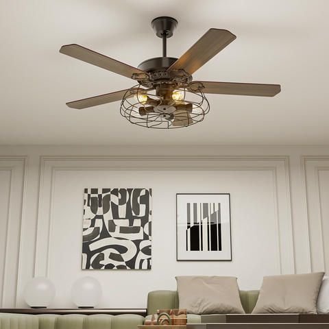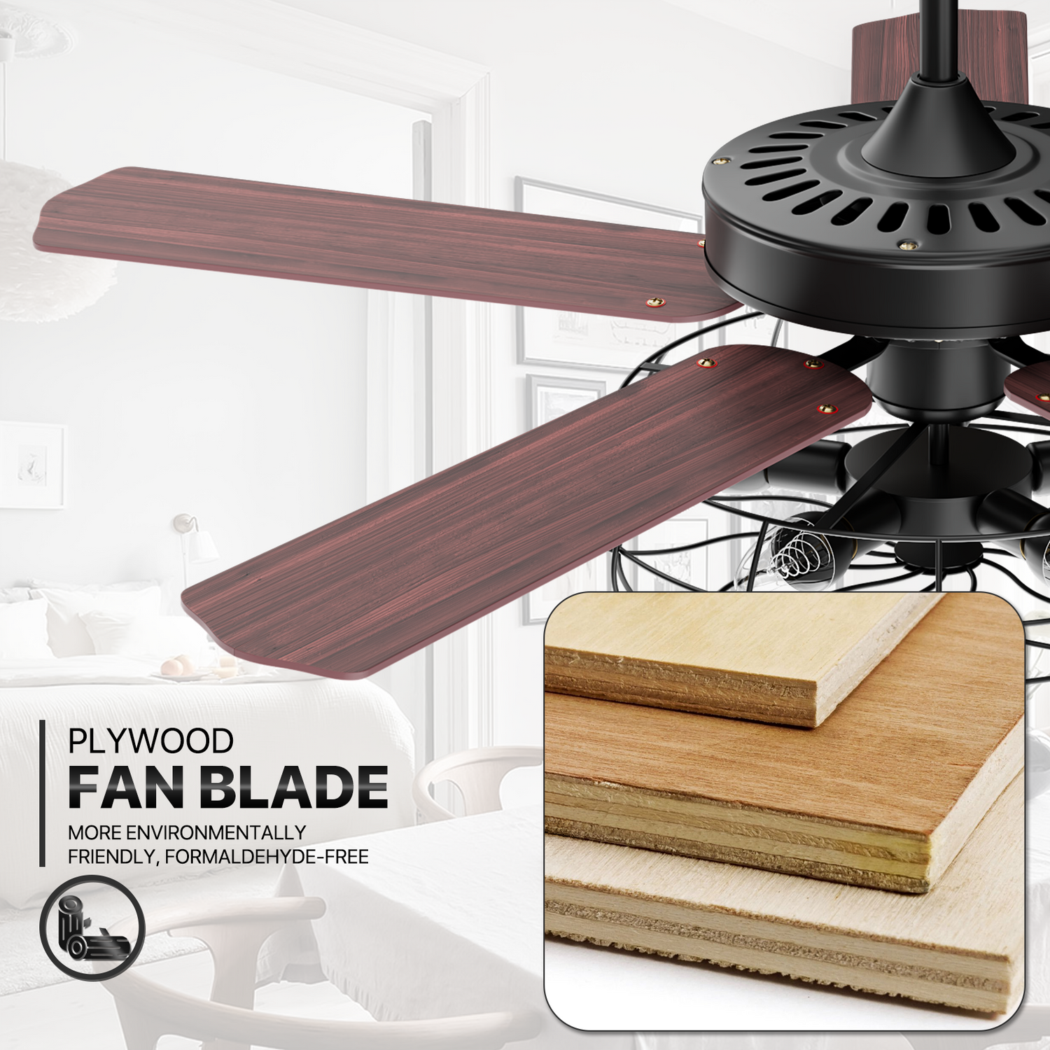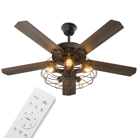 52" Reversible Ceiling Light Fan - Plywood Leaf Blade - Remote Control & Timer