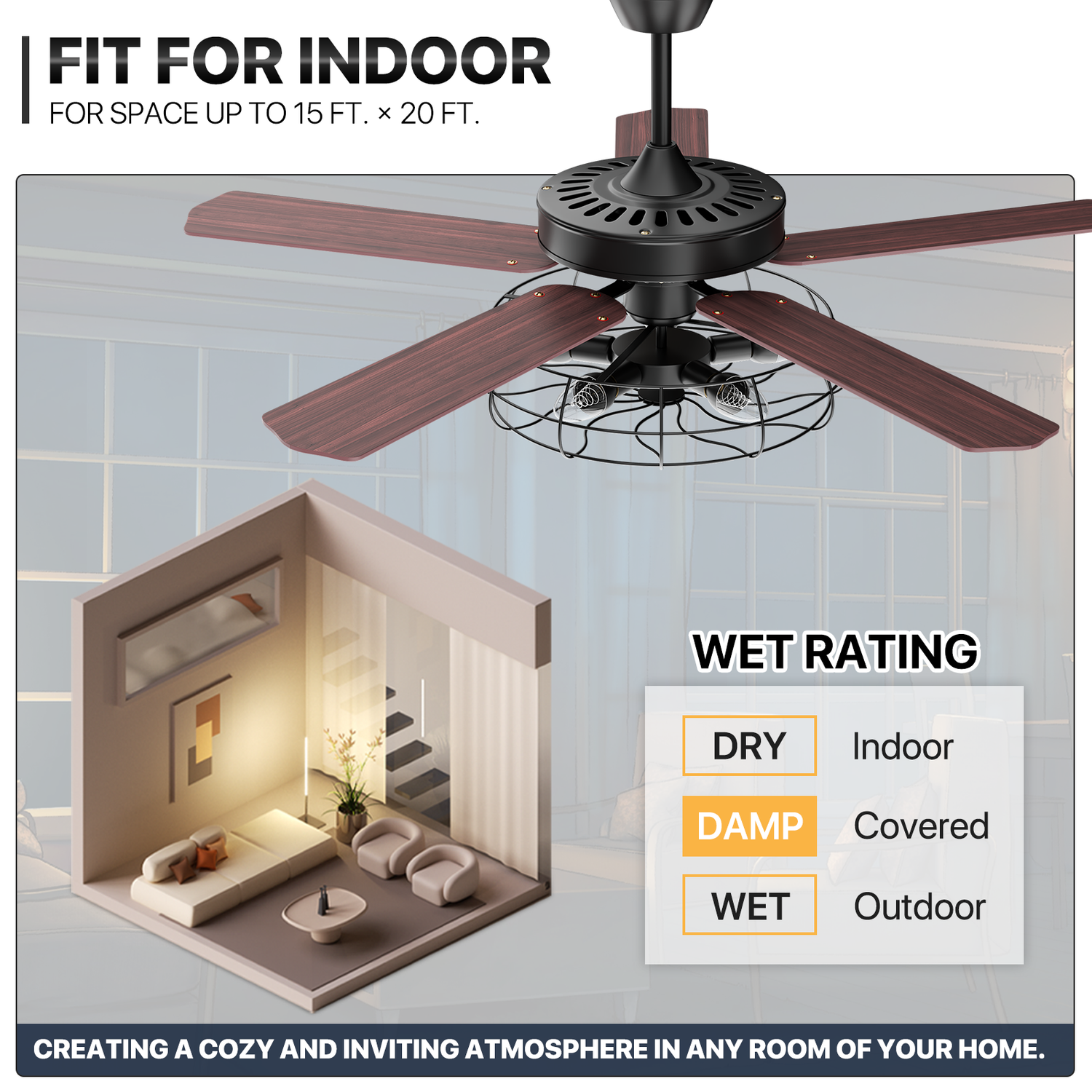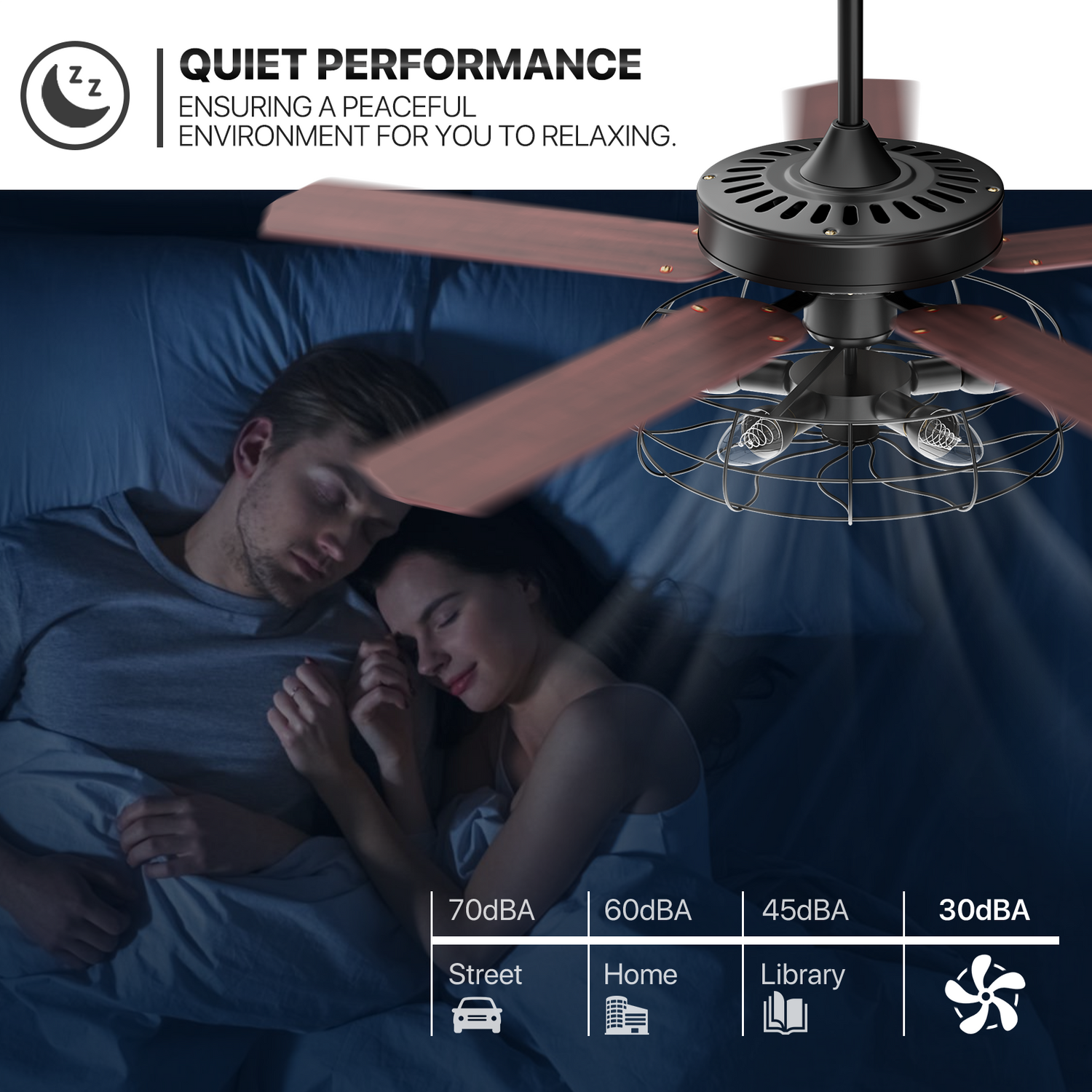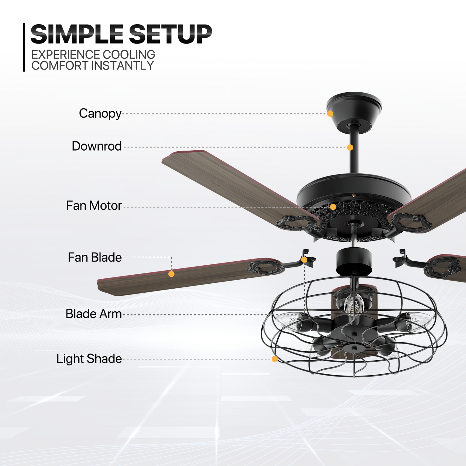52" Reversible Ceiling Light Fan - Plywood Leaf Blade - Remote Control & Timer