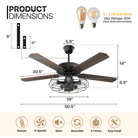 Light Bulbs Style: 5×E26 Bulb Base(Bulb Is Not Included)