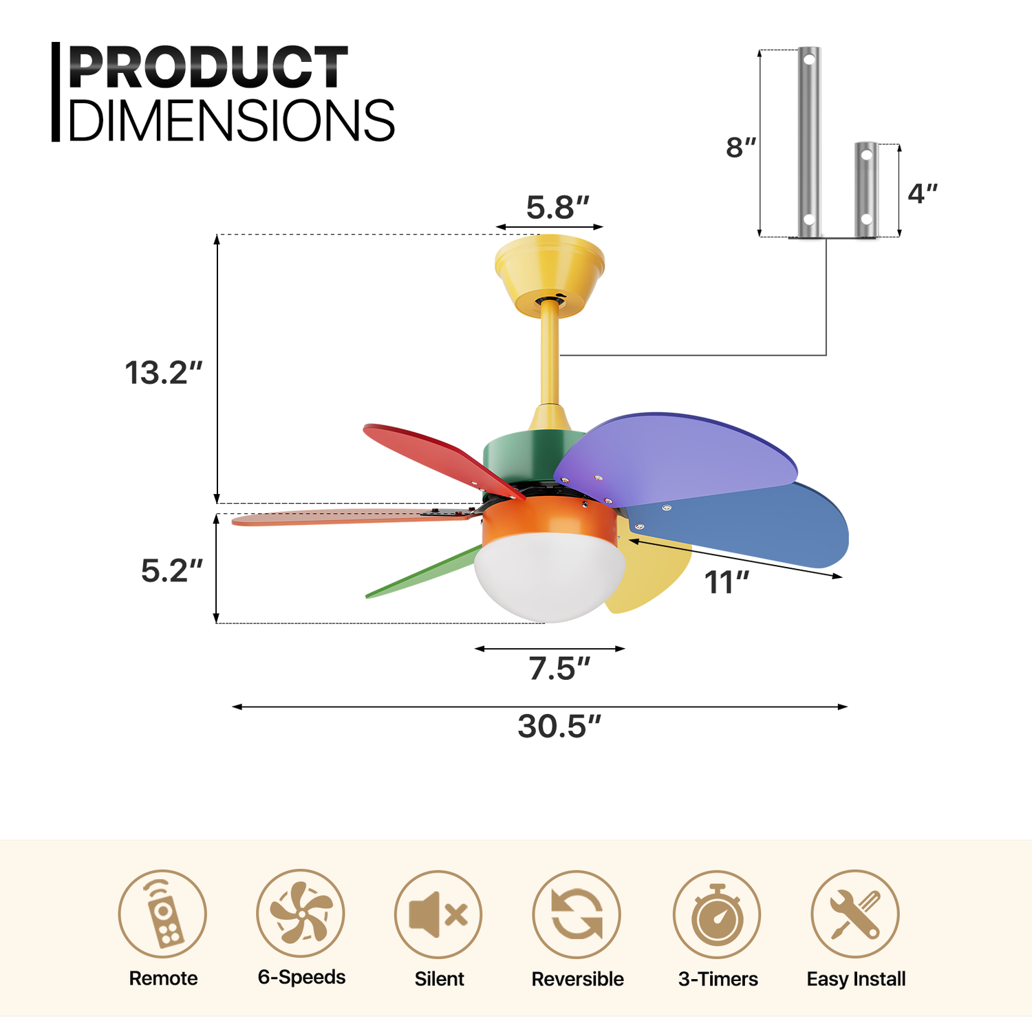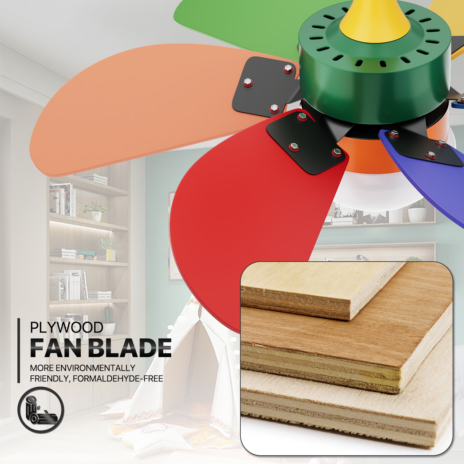 30.5" Reversible LED Lighting Ceiling Fan - Remote Control & Timer - Plywood Wood Blade