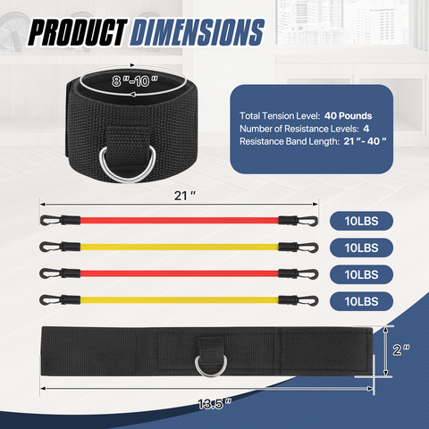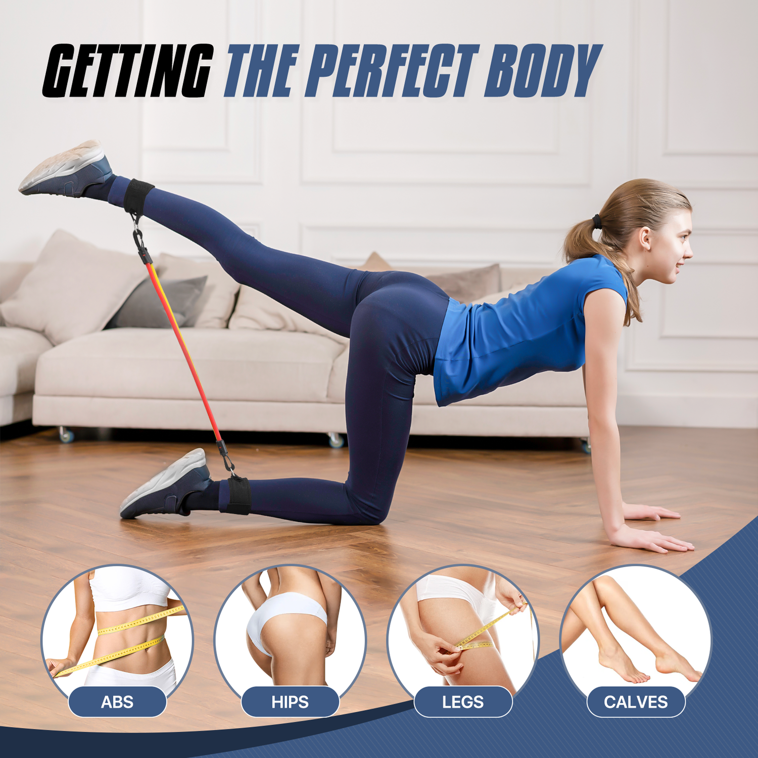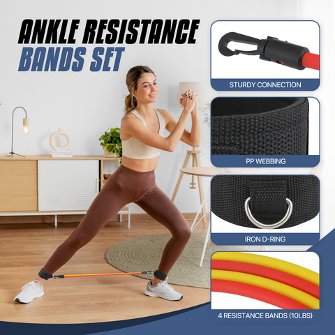 Ankle Resistance Bands w/Cuffs - Ankle Strap*2, 10 LB Resistance Band*4