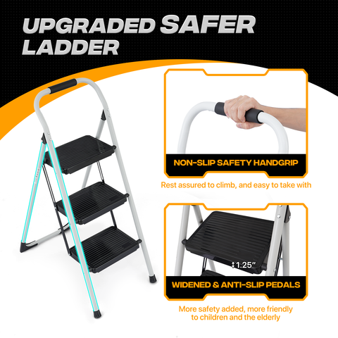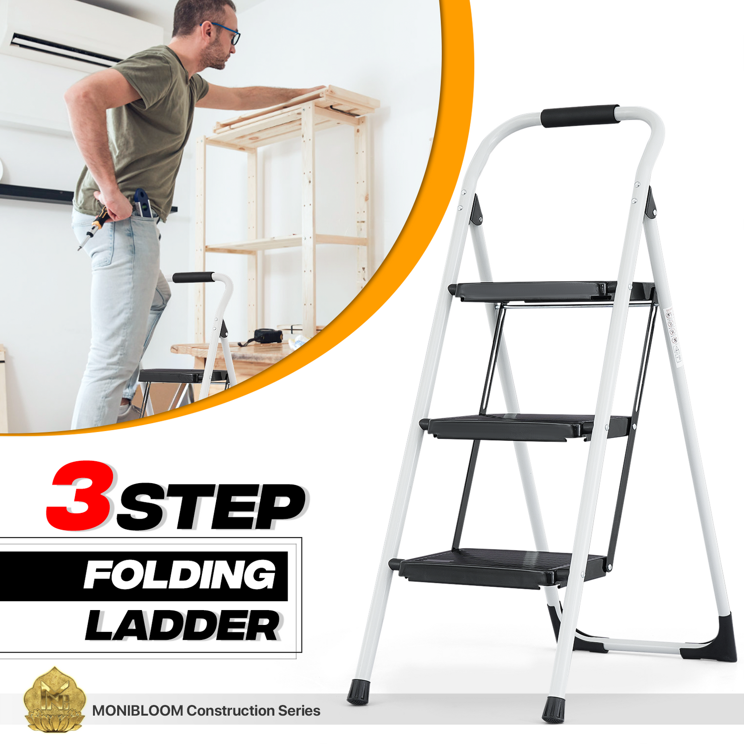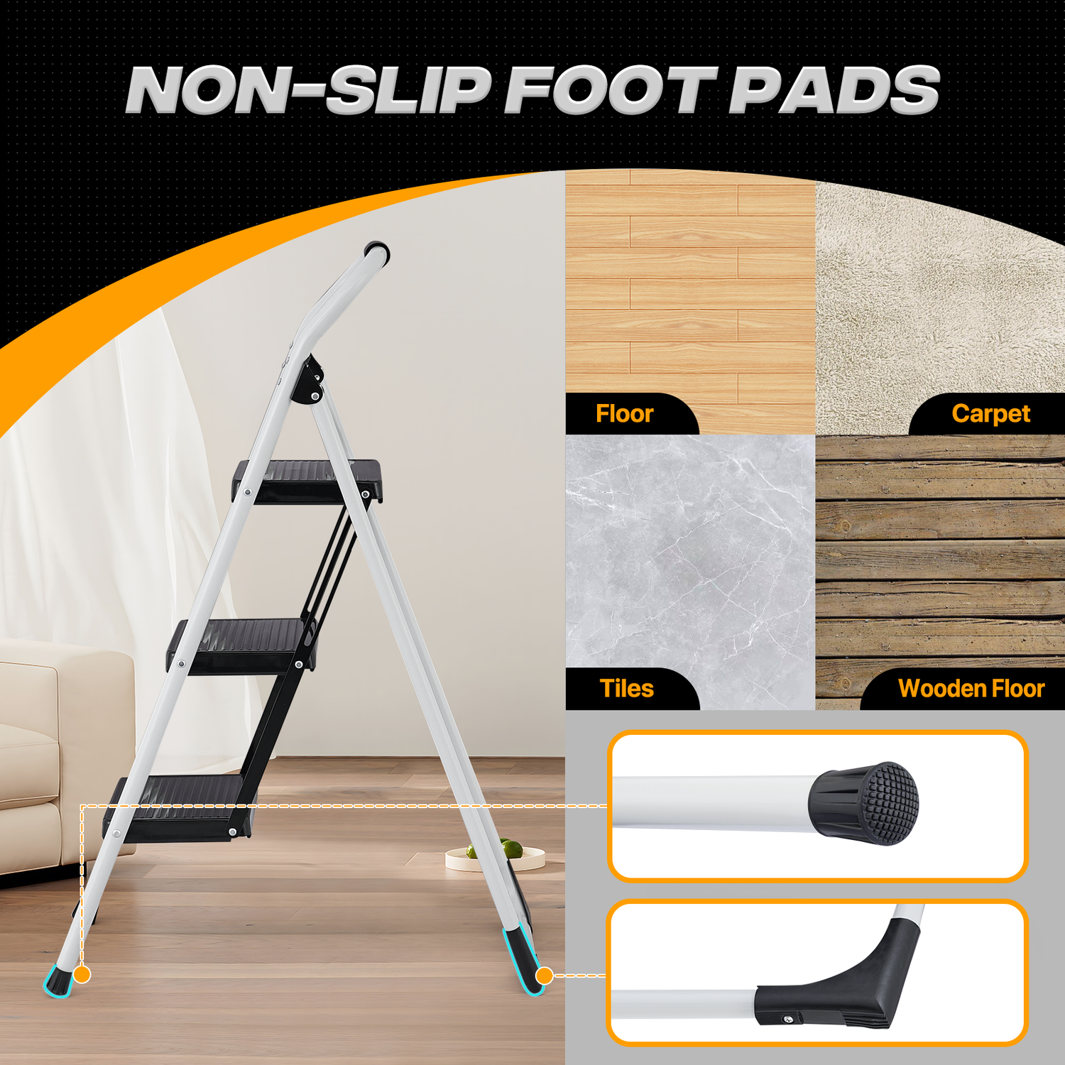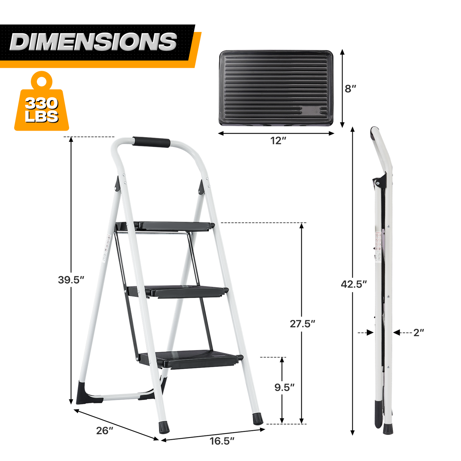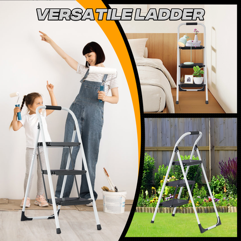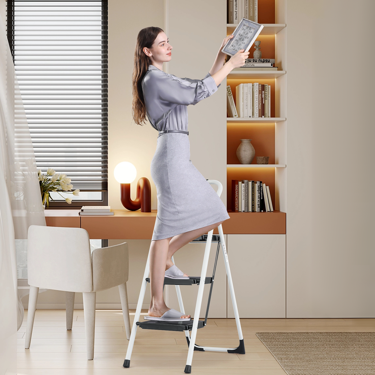 Step Ladder-3 Step-40"Height - White - Iron+PP