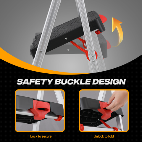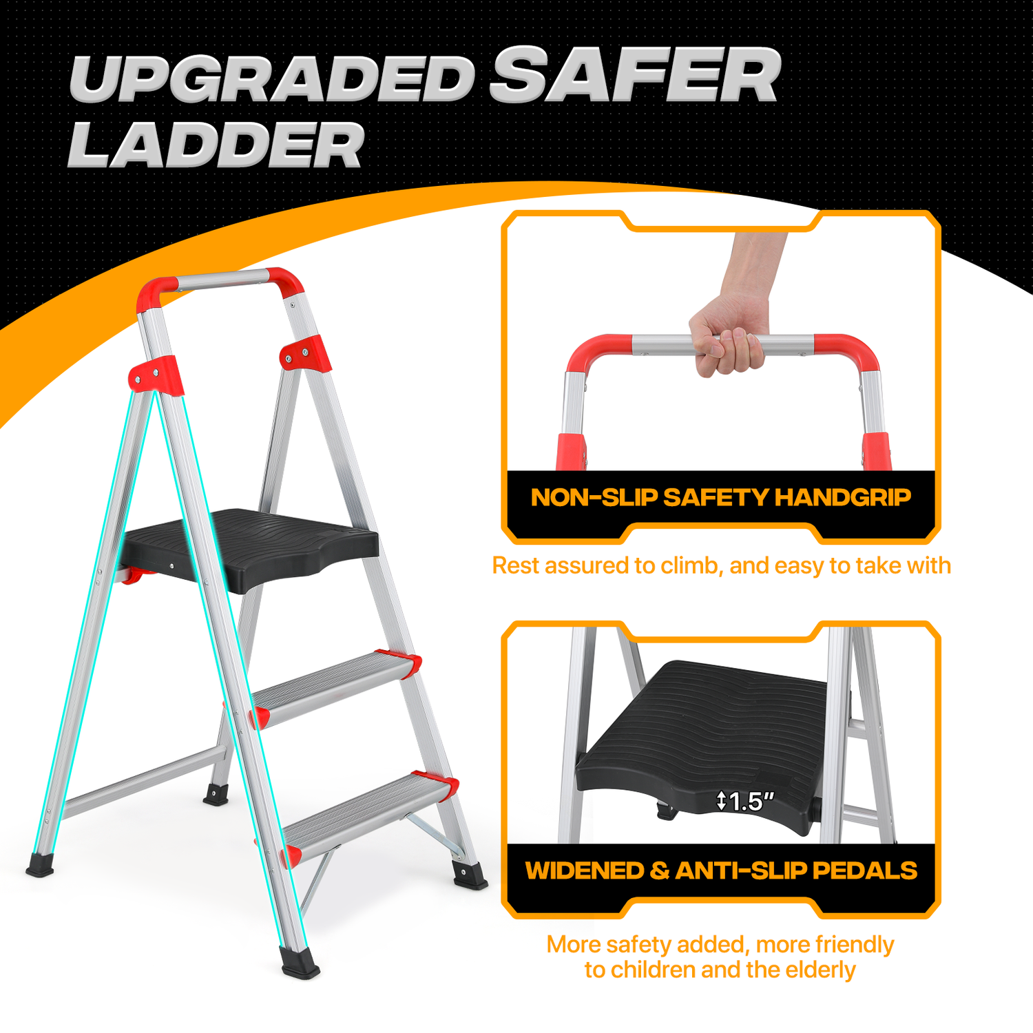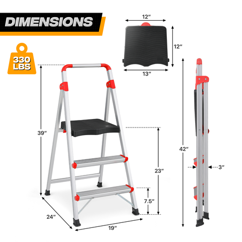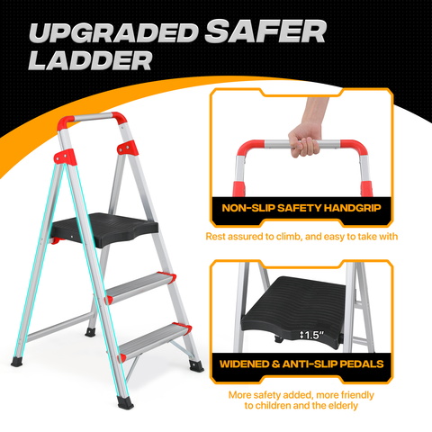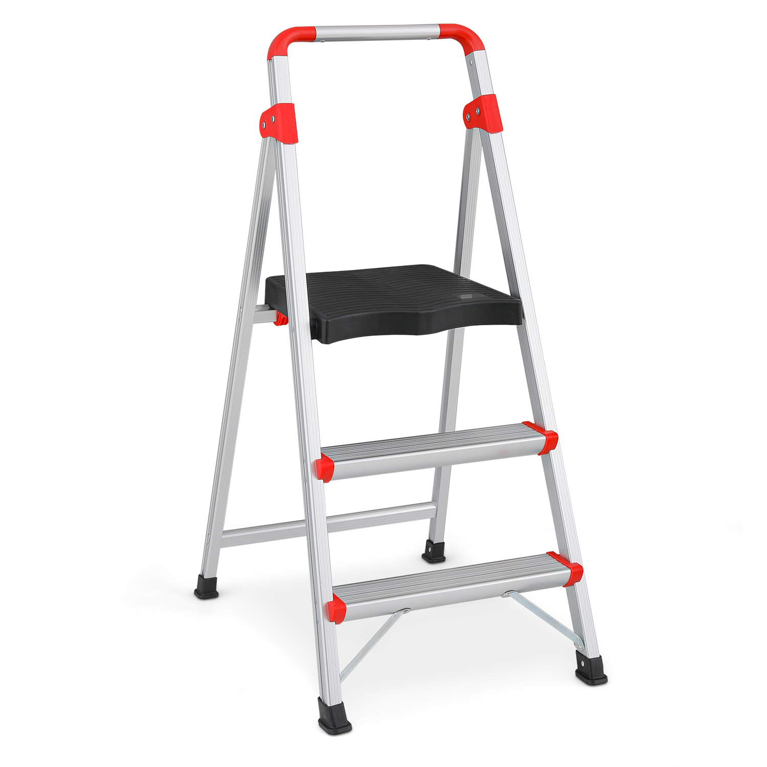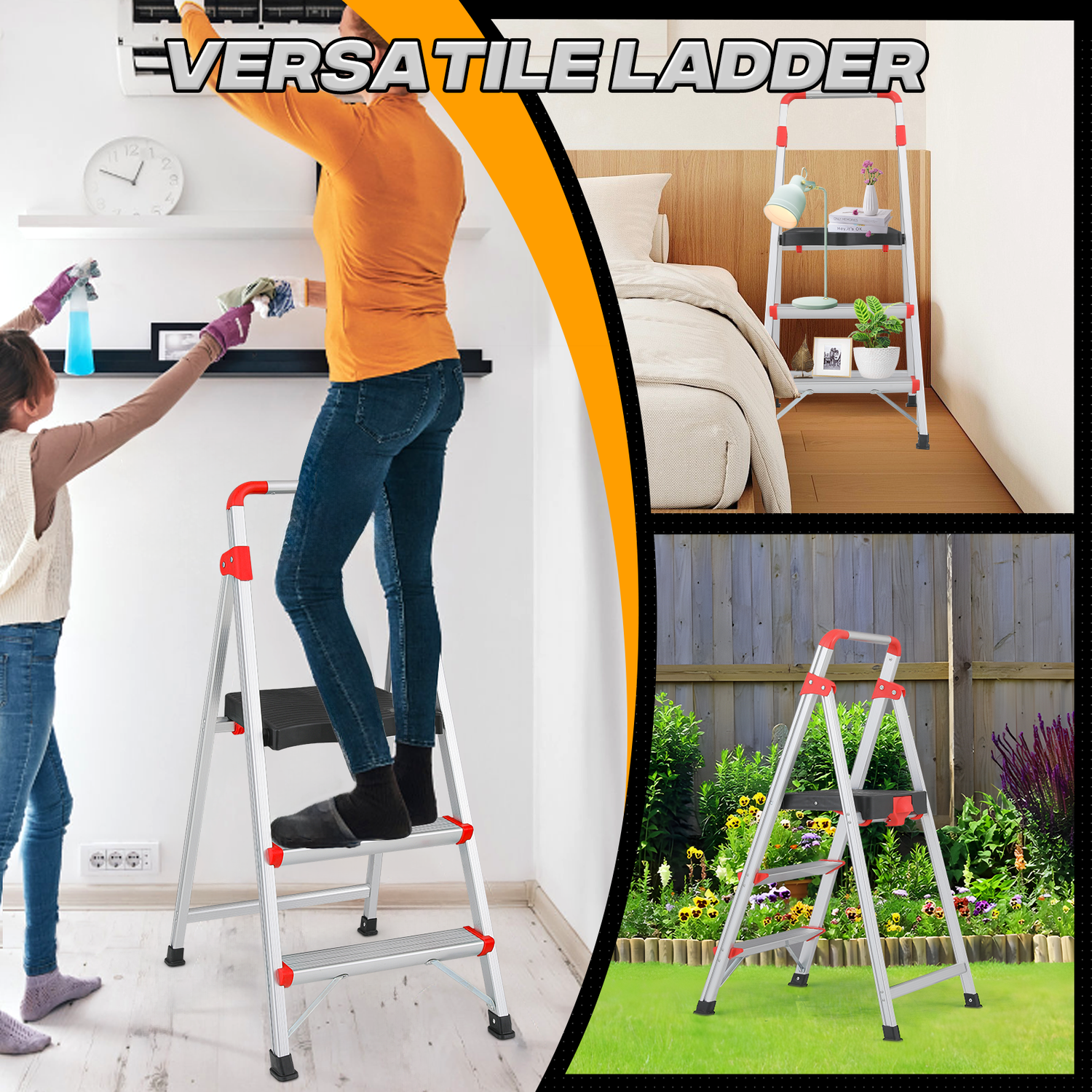 Step Ladder-3 Step-39"Height - Silver ,with Anti-Slip Step - Aluminum+PP