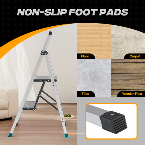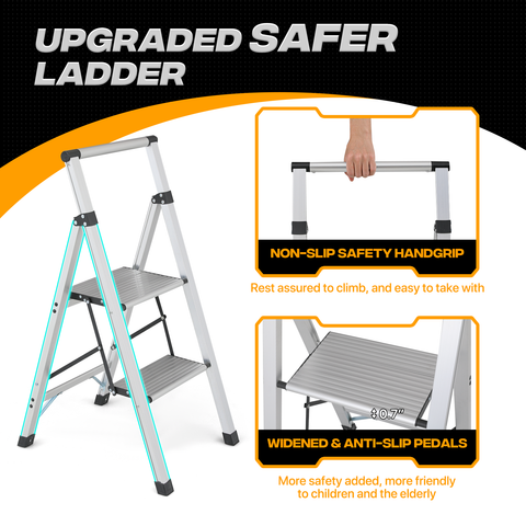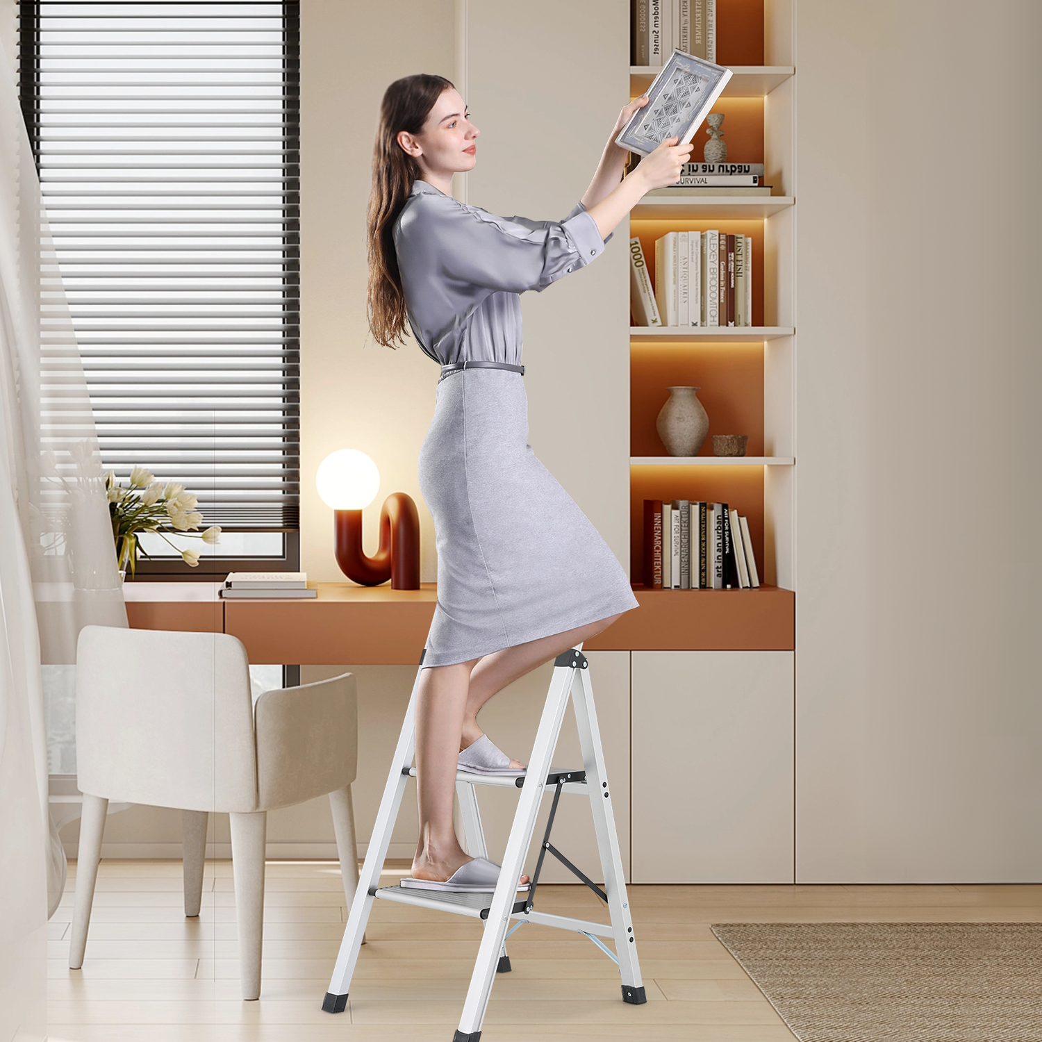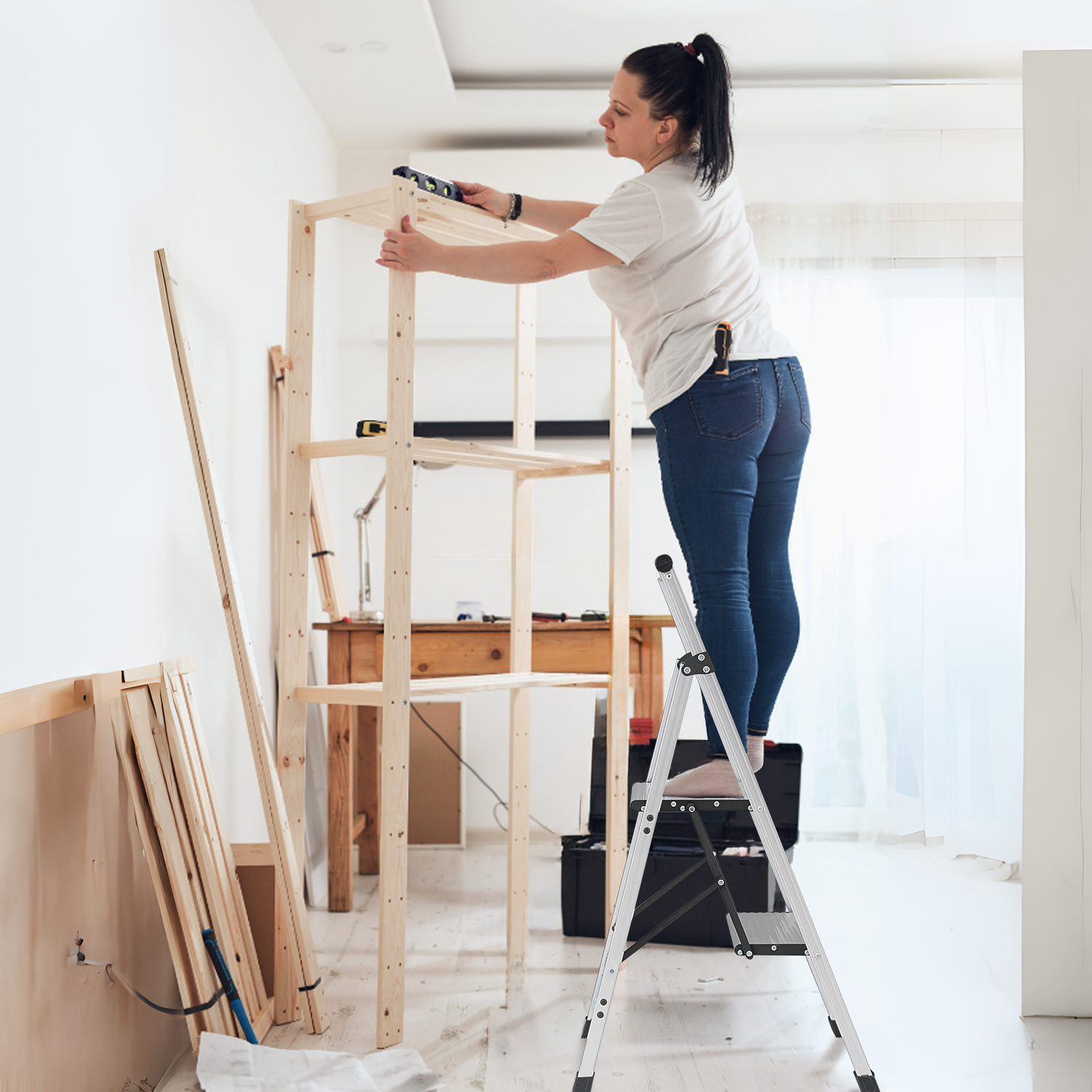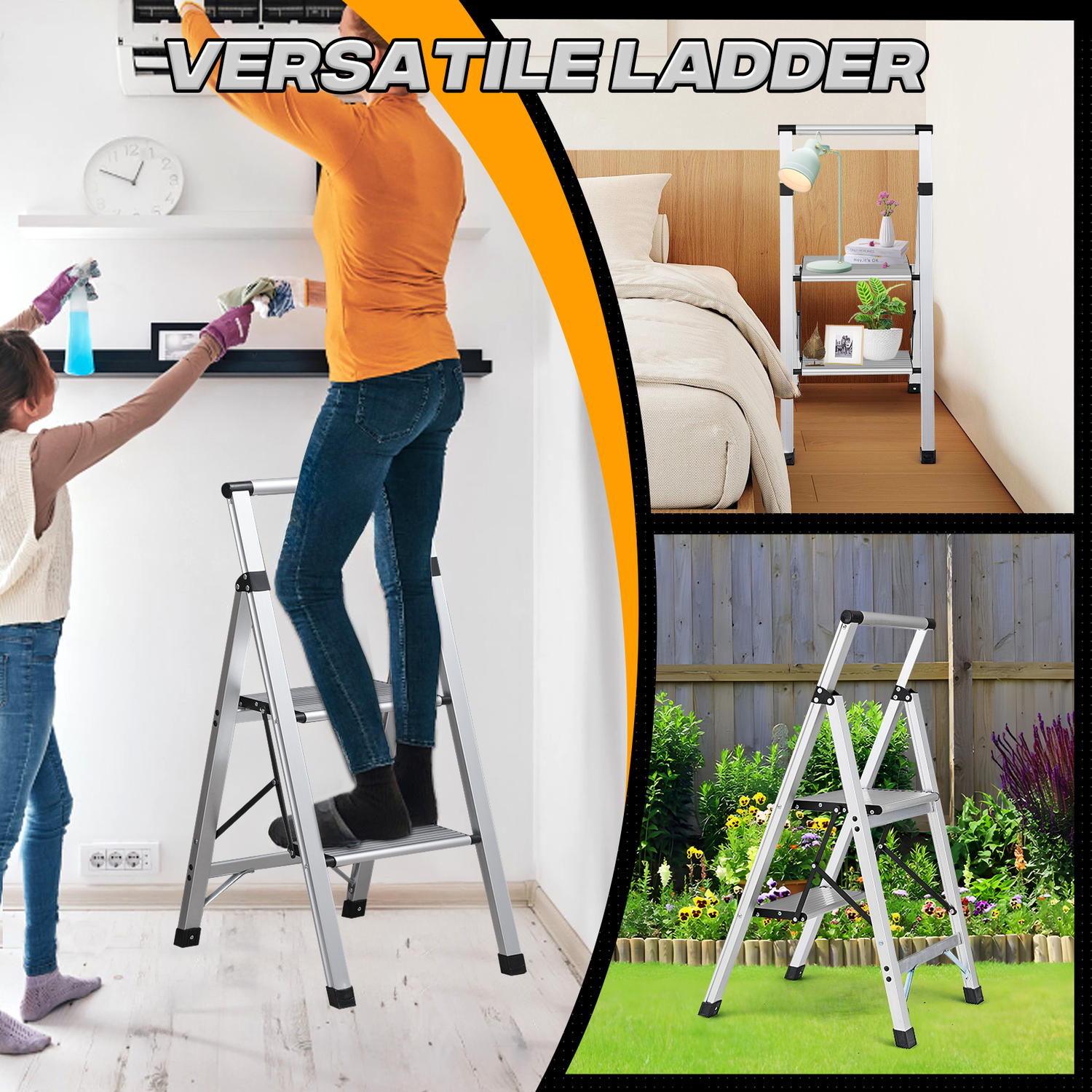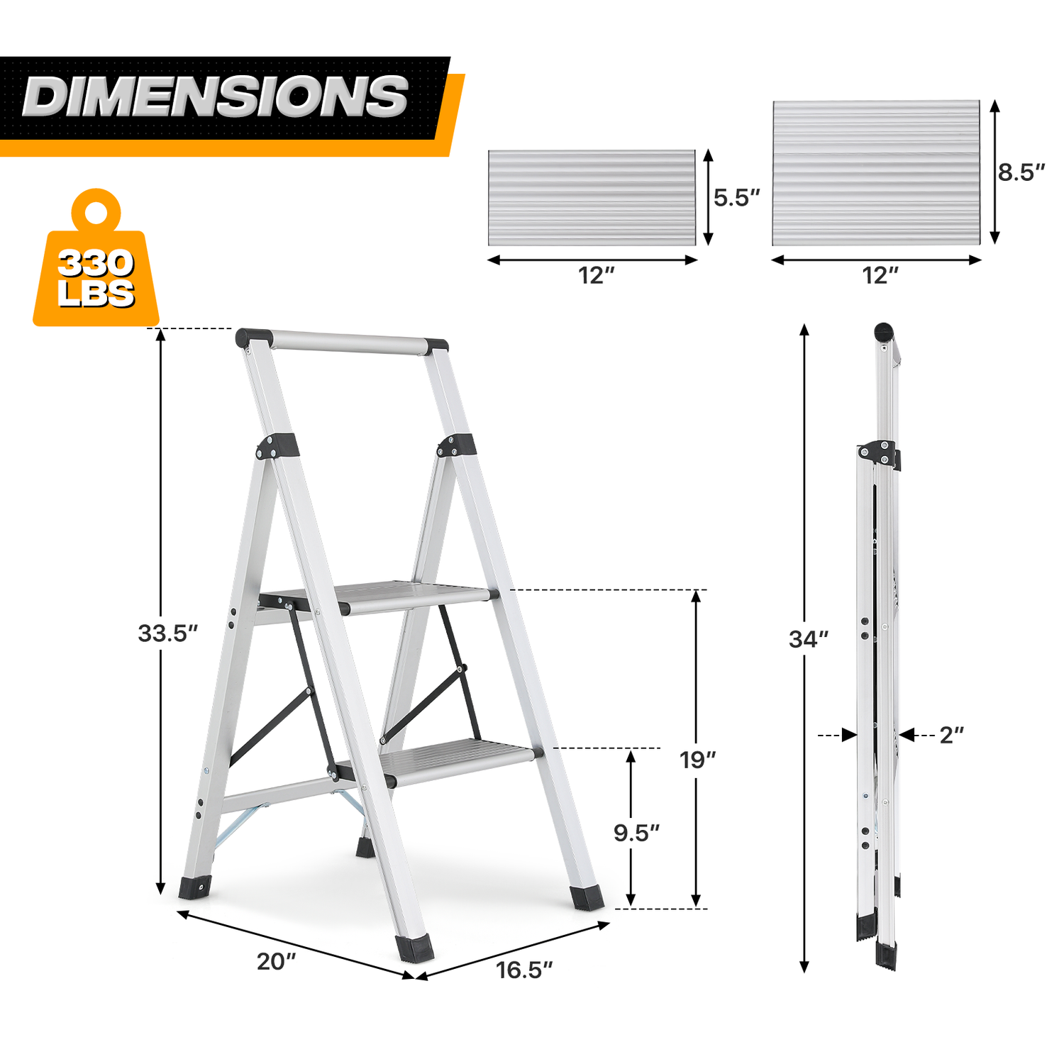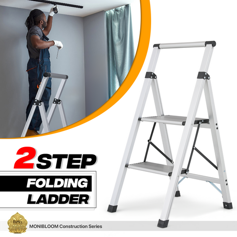 Step Ladder-2 Step-34"Height - Silver - Aluminum+PP