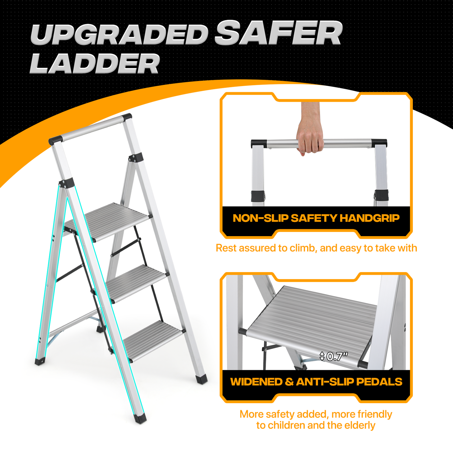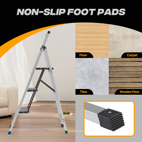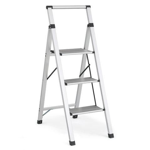 Step Ladder-3 Step-43"Height - Silver - Aluminum+PP