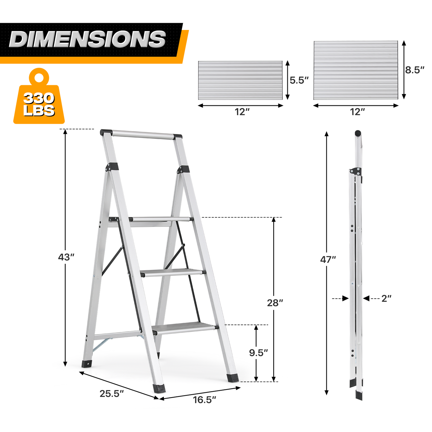 Each Step Size: (L)12.0" (W)8.5"