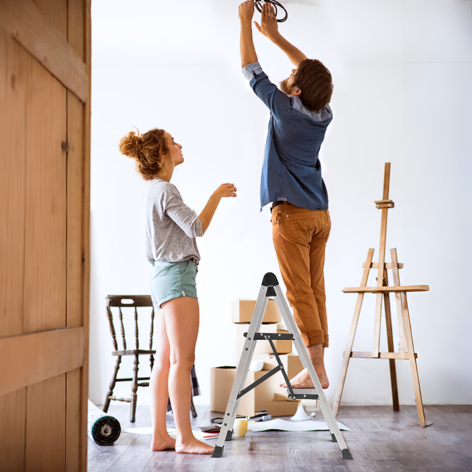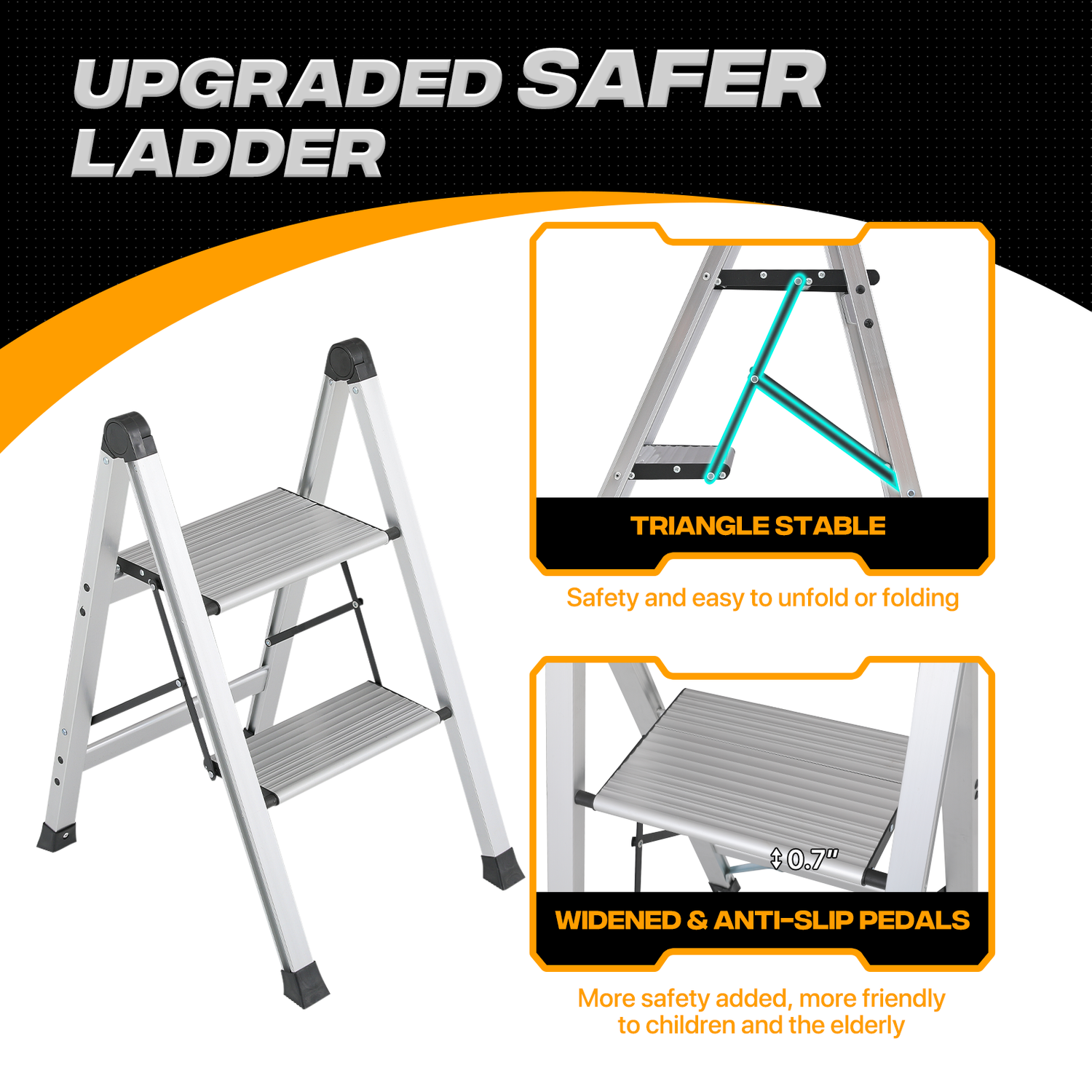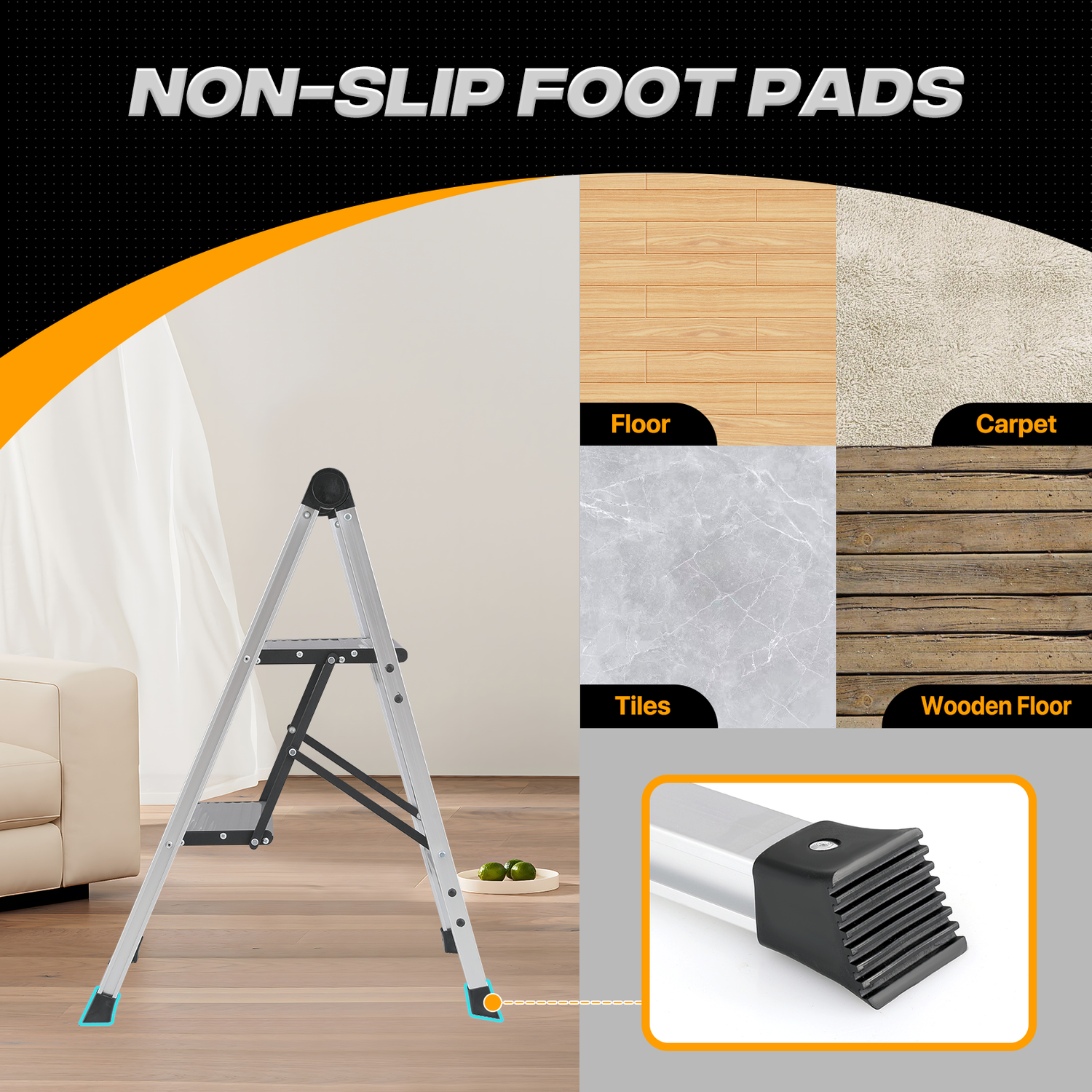 Step Ladder-2 Step-27"height - Silver - Aluminum+PP