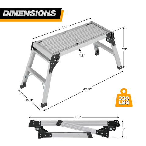Step Ladder Heavy Duty Foldable Platform -42" Length , Material: Aluminum+PP